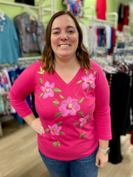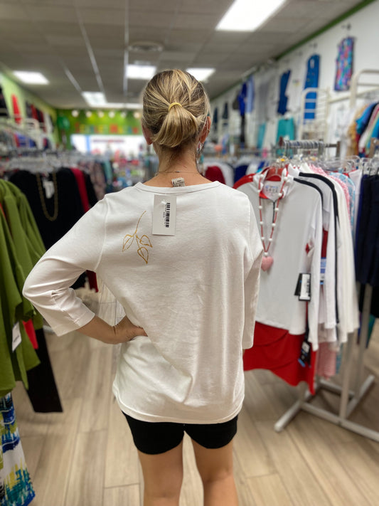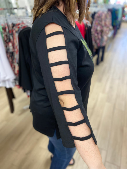 Peg Painted Metallic Palm Ladder Sleeve Top