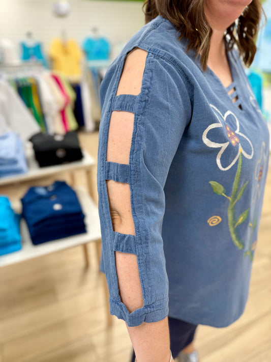 Peg 0011 Painted Denim Flowers Top