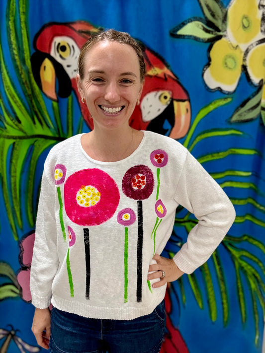 Peg Painted Magenta Center Flower Sweater