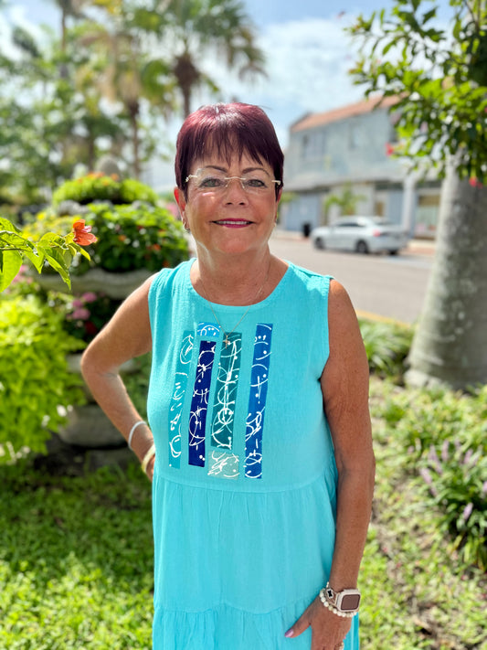 MoMo 1681 Blue Bars Painted Maxi DressRegular price $95.00 USDRegular priceUnit price per-