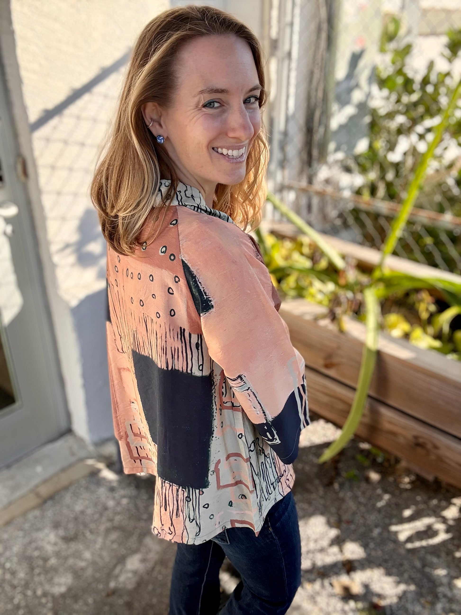 THIS IS NOT A SET PRINT - Your shirt may or may NOT have the print fall in the same place as the model in the photo. These tops are printed fabric that is then cut and sewn so that each item is completely unique. They are not printed after manufacturing to guarantee a consistent print placement. While the colors and design are the same as shown in the photo the print placement will most likely vary!