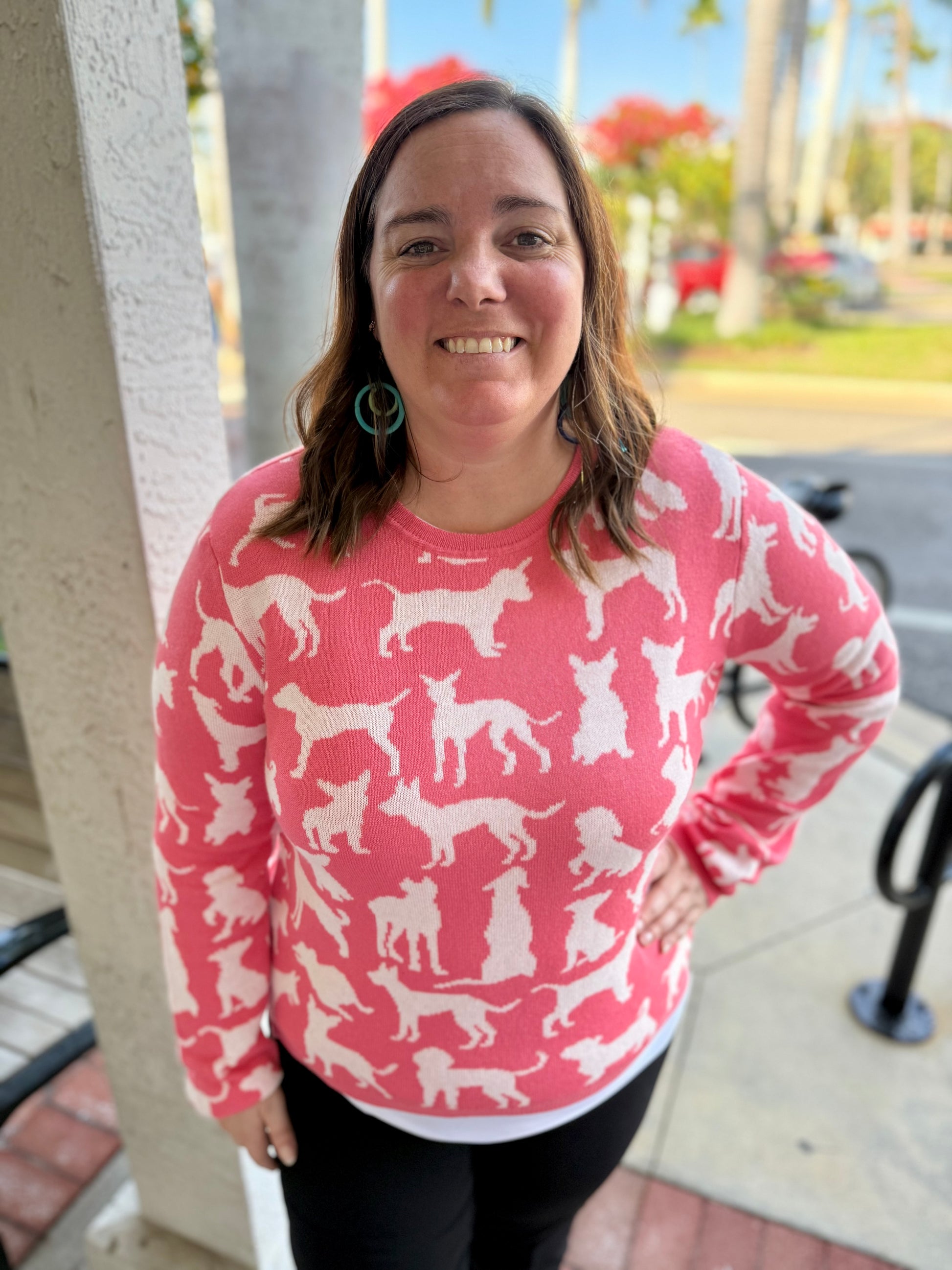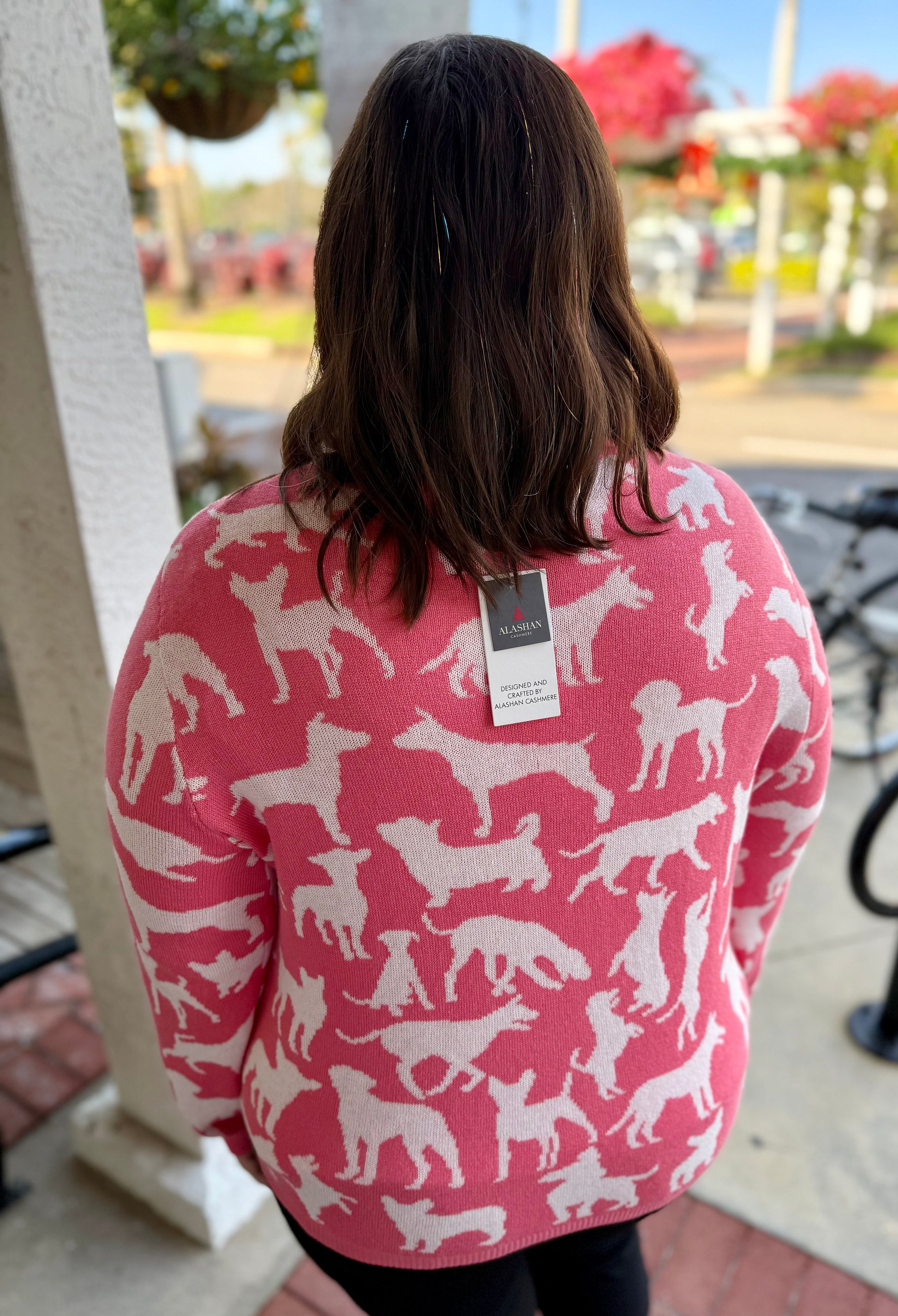Cover yourself in dogs! Nothing is better than a whole mess of furry friends and this sweater has got them all! A soft cotton / cashmere blend will have you reaching for this on every chilly day.