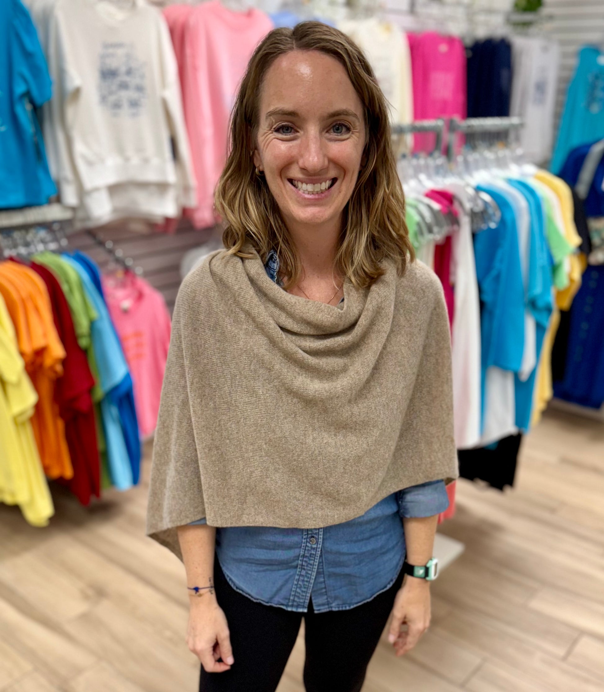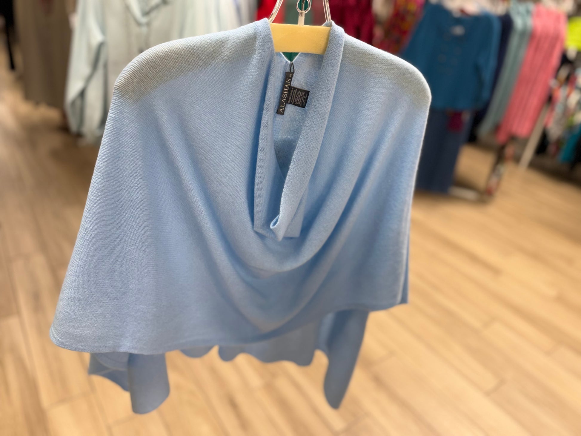 These amazingly soft and cozy cashmere toppers are perfect for every day! Toss them in your bag for a dinner out or a versatile travel piece. They can be worn angled as a poncho, hi-lo as a poncho, or tied up as a scarf!