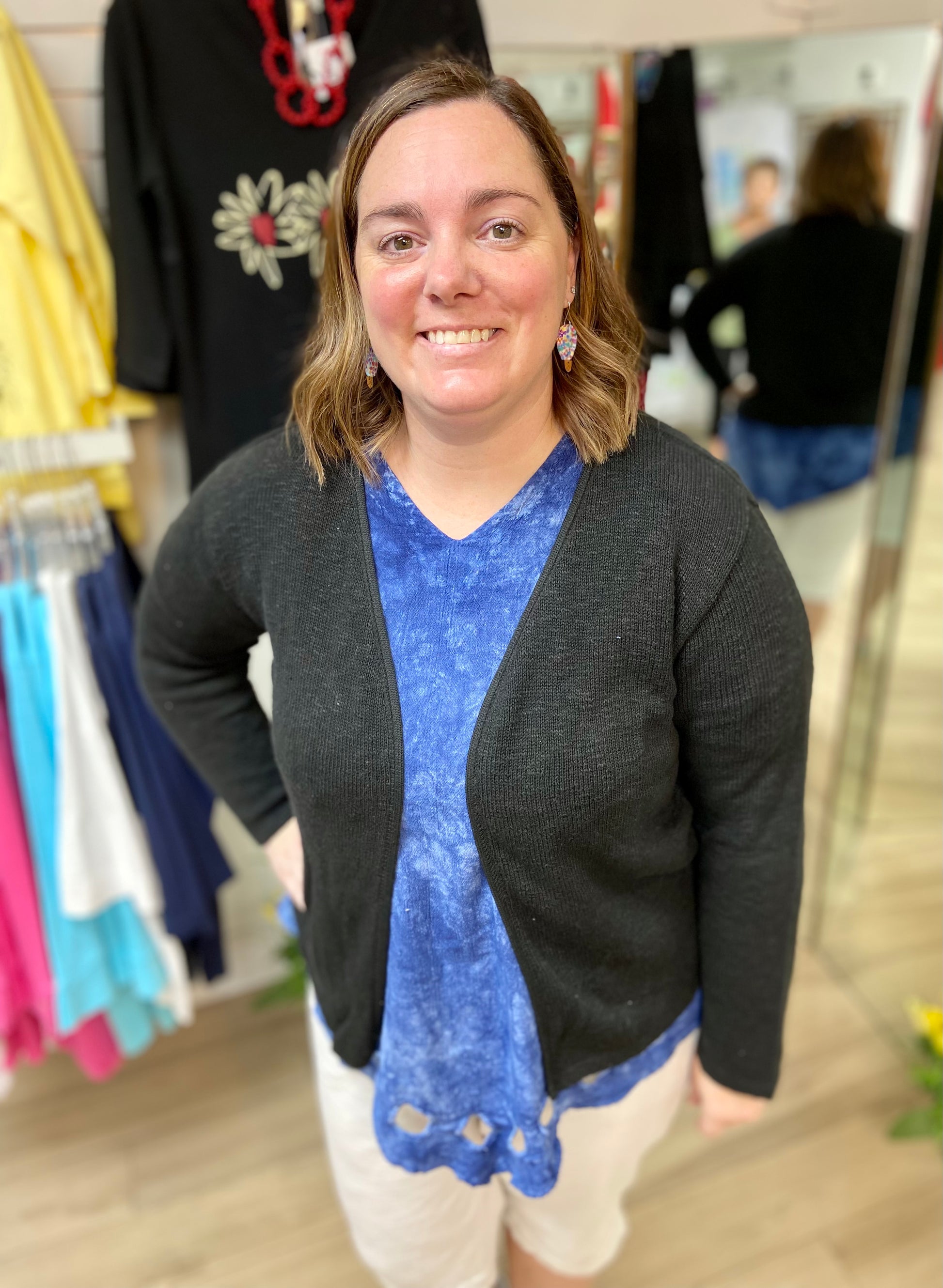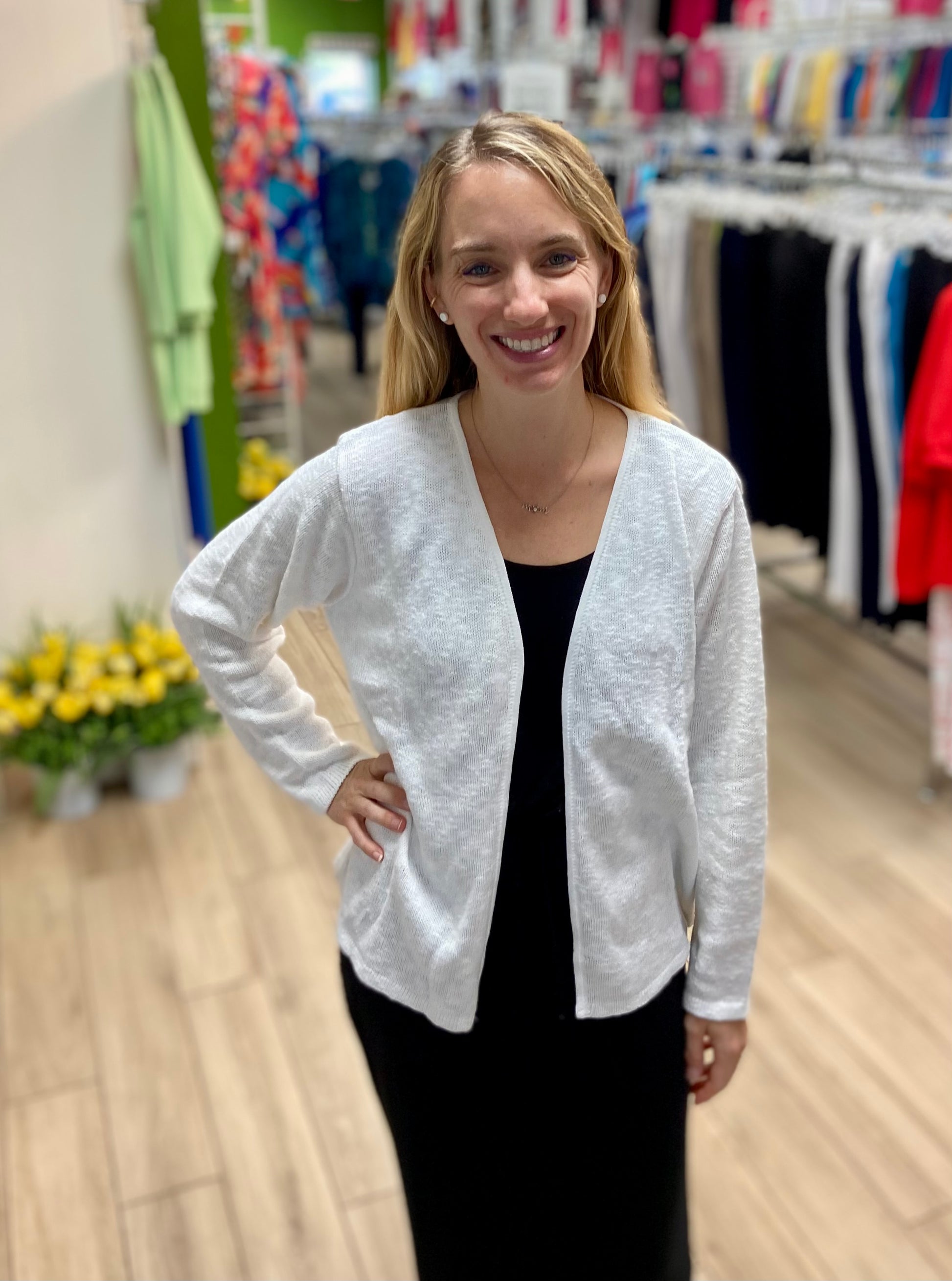 These comfy cotton cardigan is perfect to toss on in a chilly restaurant, cold airplane, or just with your favorite jeans!