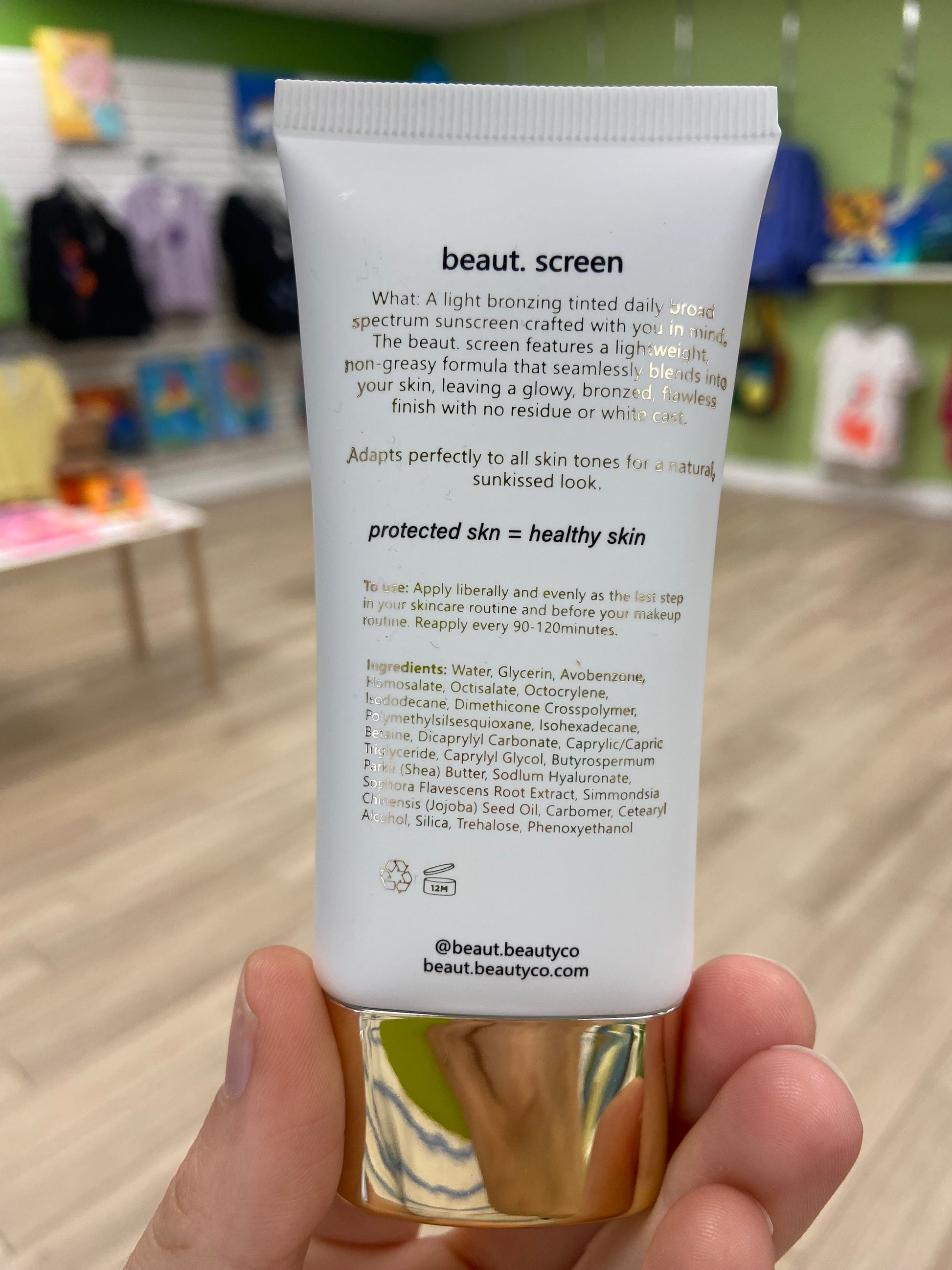 Golden Glow - A lightweight bronzing and tinted daily broad spectrum sunscreen crafted with you in mind. The beaut. screen features a lightweight, non-greasy formula that seamlessly blends into your skin, leaving a glowy, bronzed, flawless finish with no residue or white cast. Adapts perfectly to all skin tones for a natural, sunkissed look. SPF 40. Perfect for all skin types, including sensitive skin.