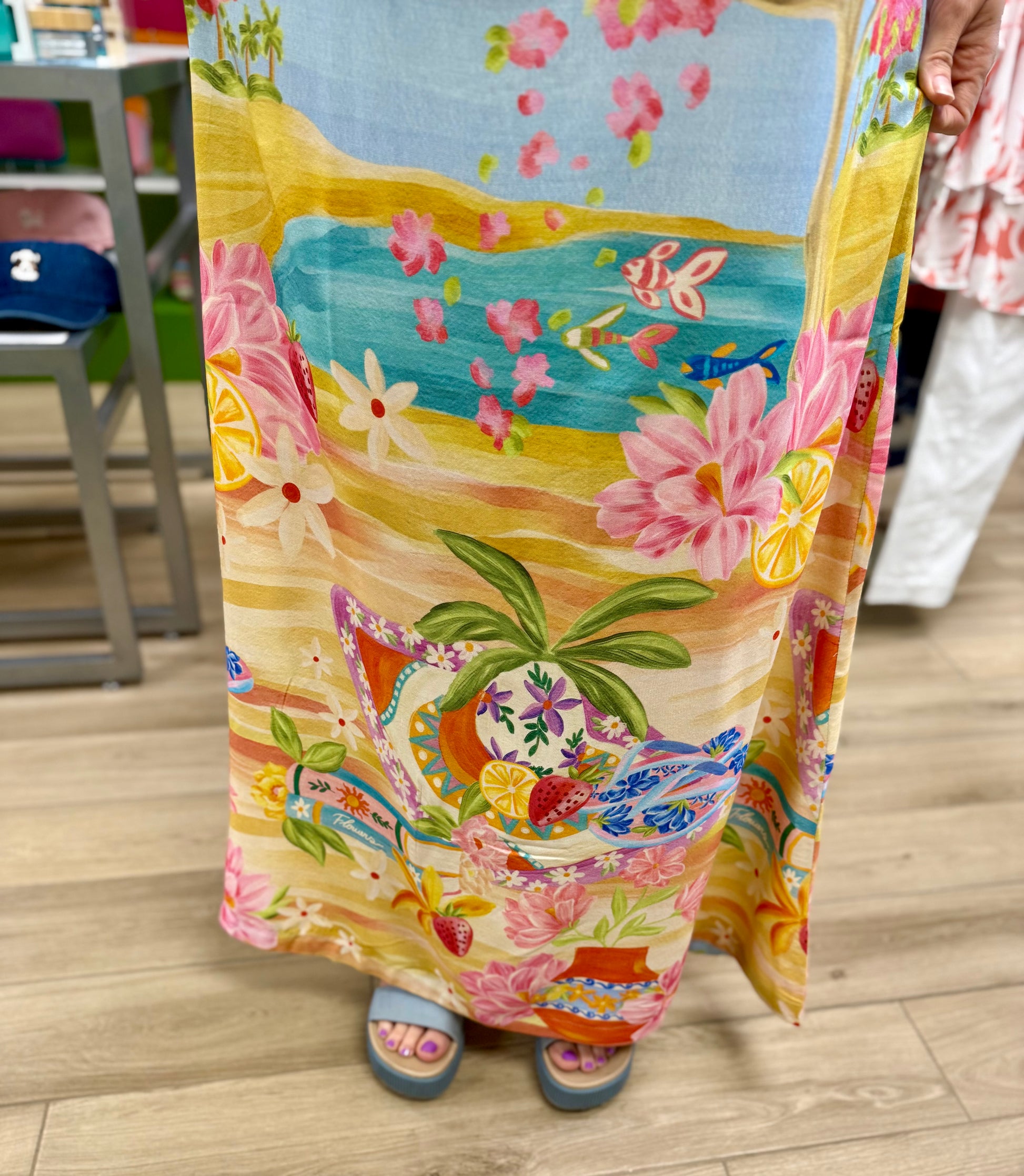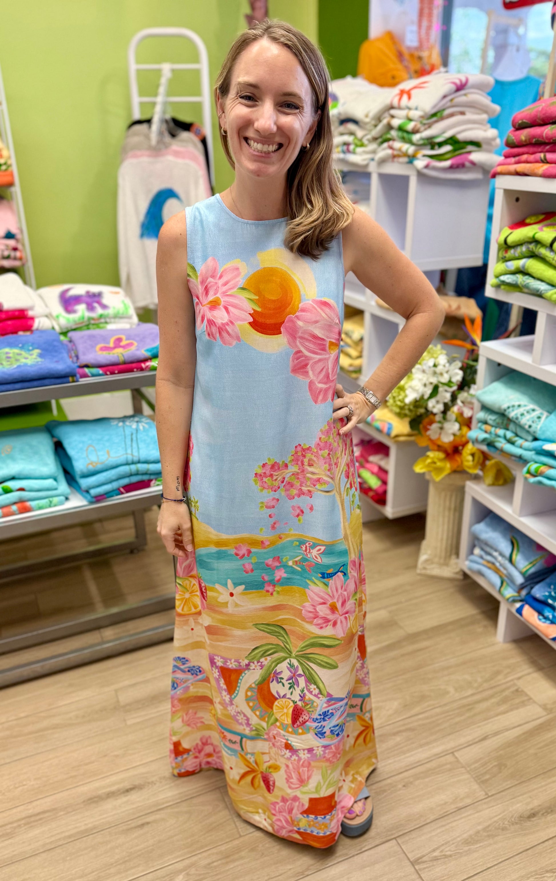 A stunning maxi that is just begging to go on vacation! Long, lightweight and lovely - you don't want to miss this wearable work of art.