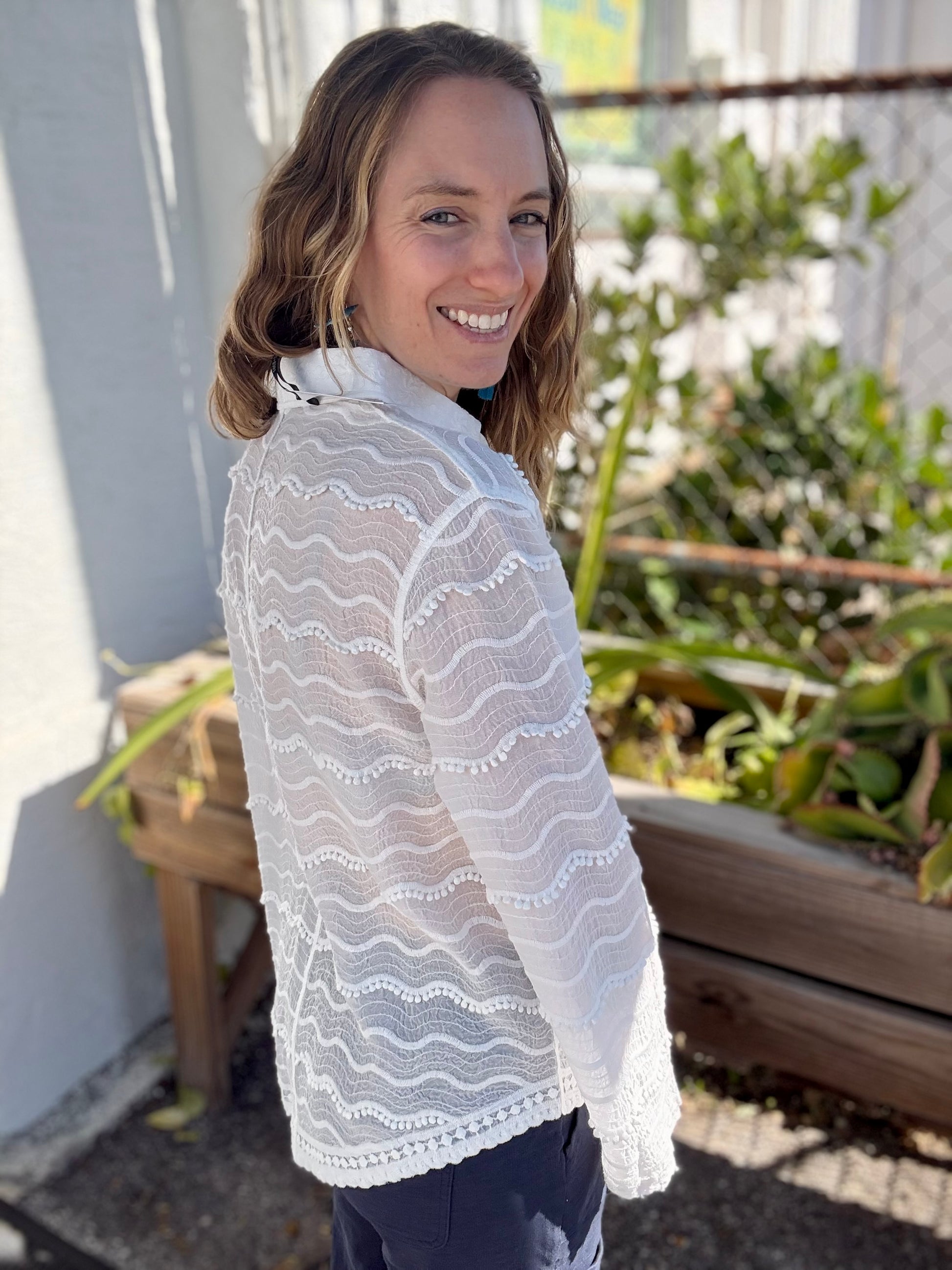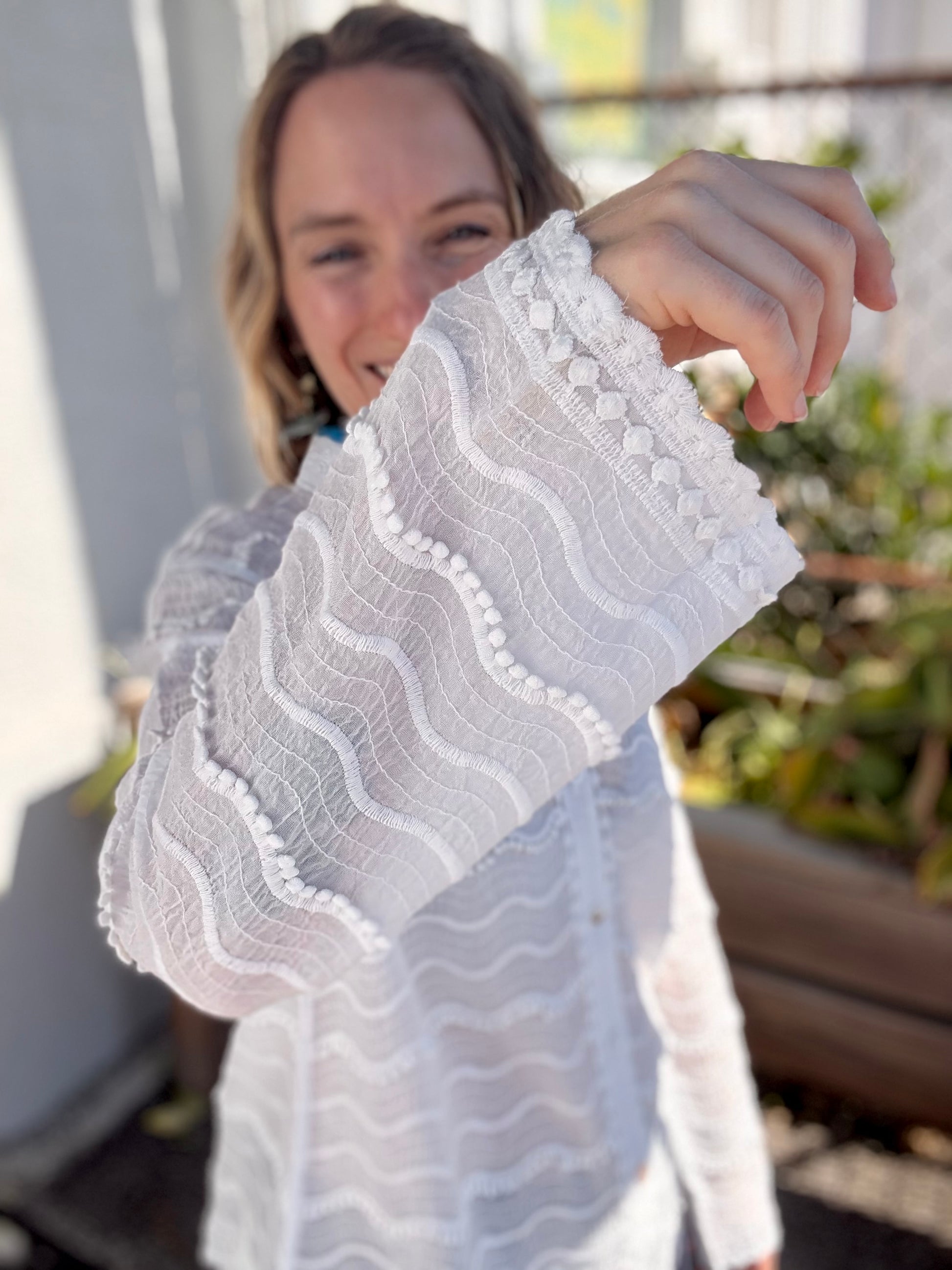 It's hard to beat a crisp white blouse - and the details on this one make it tons of fun! The trim is so cute!