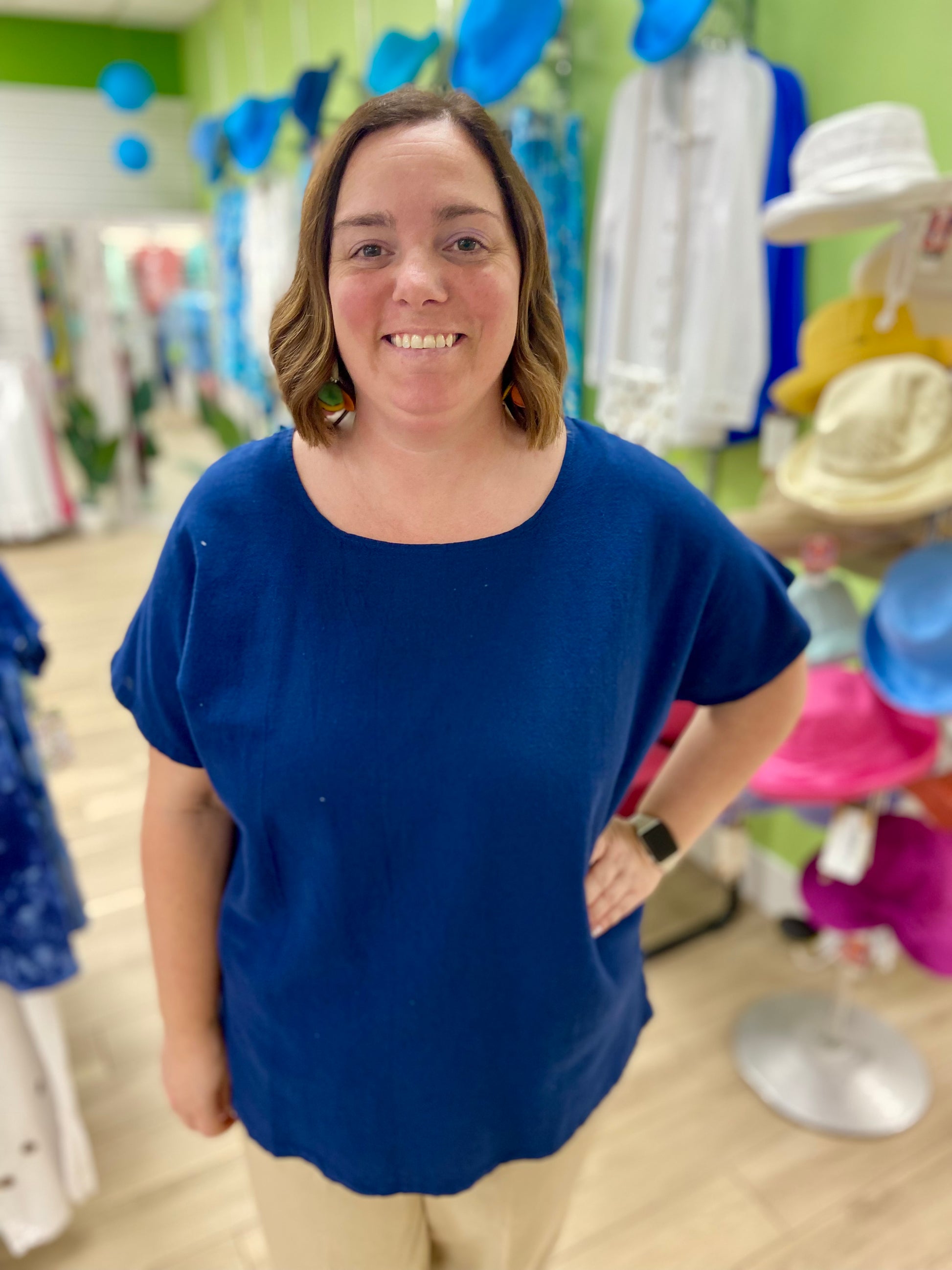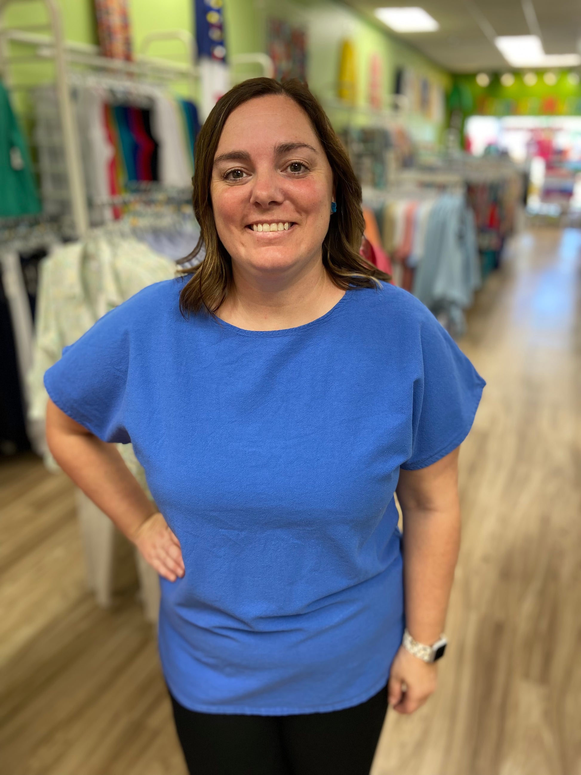 Kick back and relax in this basic, every-day cotton tee featuring a dolman sleeve.