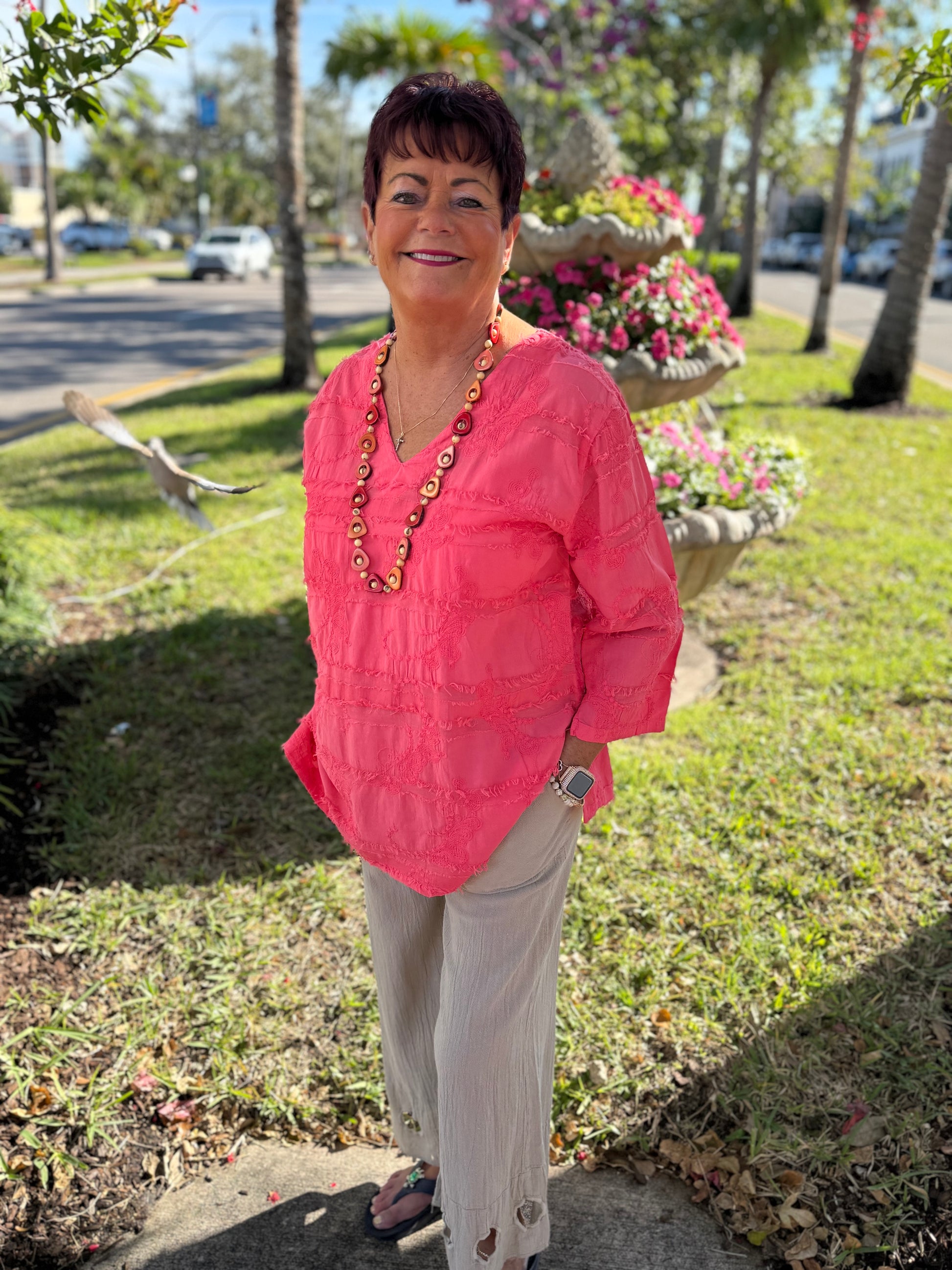 These fun ankle pants feature cut out hole details at the bottom for extra style!