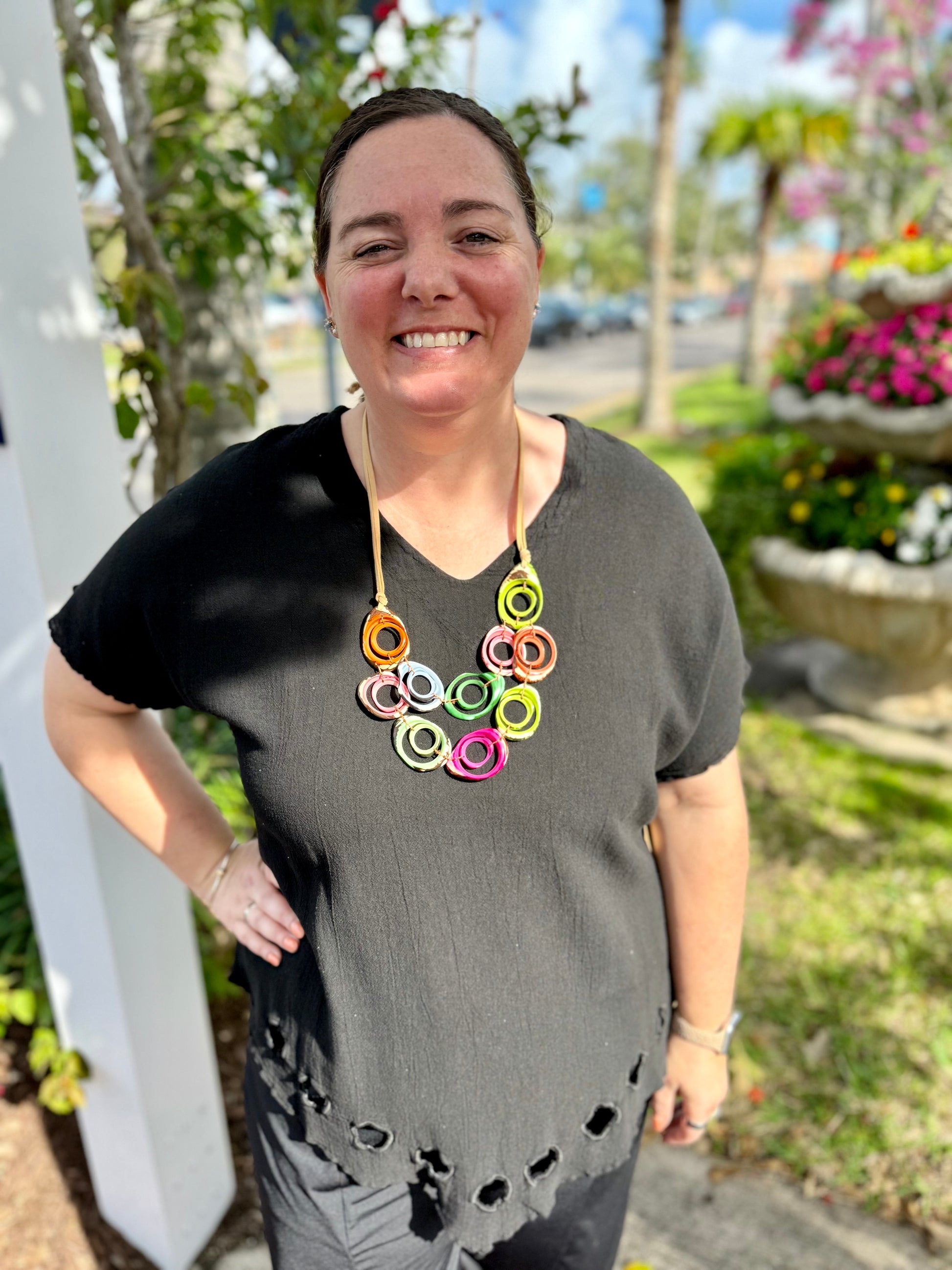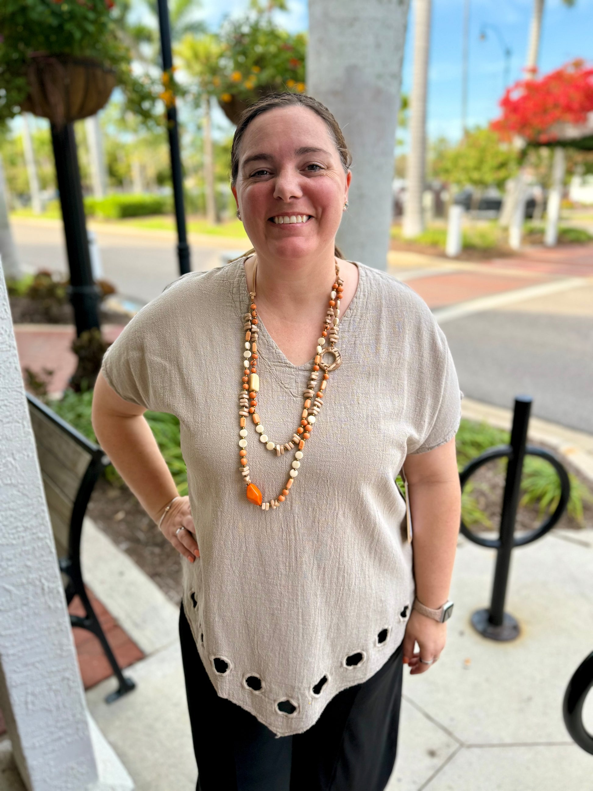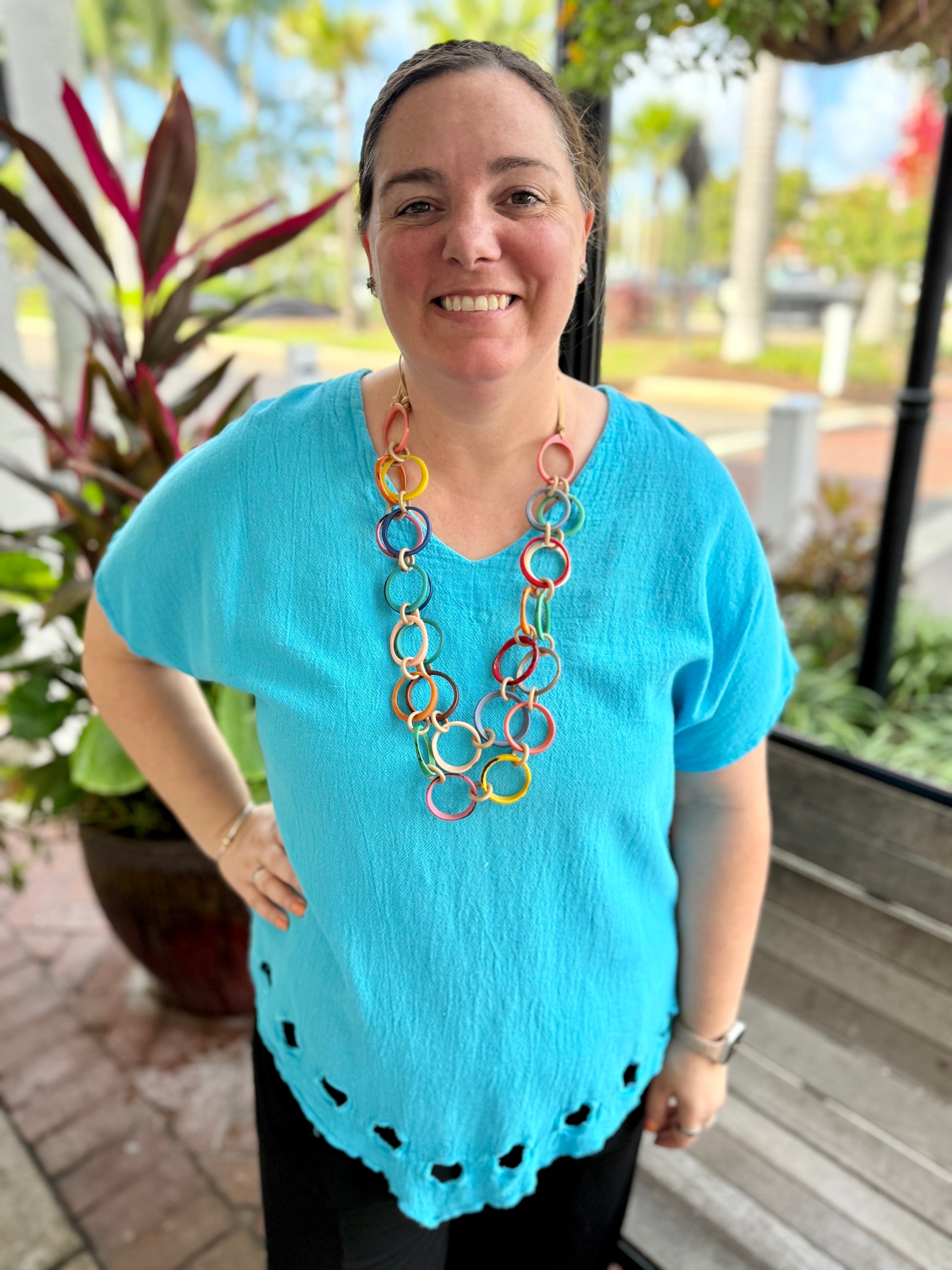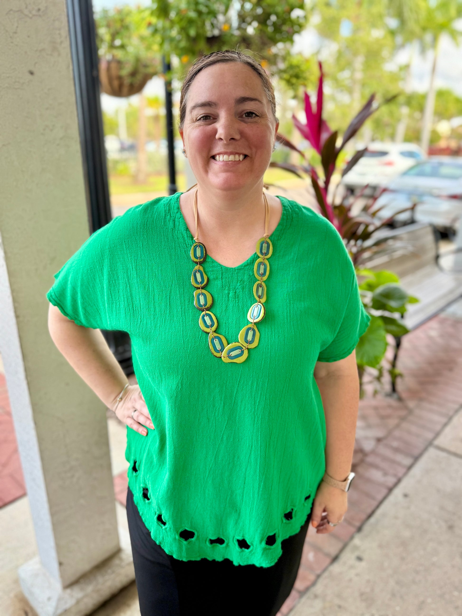 These pointed-hem tops features circle cut-outs around the bottom for added fun & style! One of our best selling tops of all time - you are sure to fall in love.