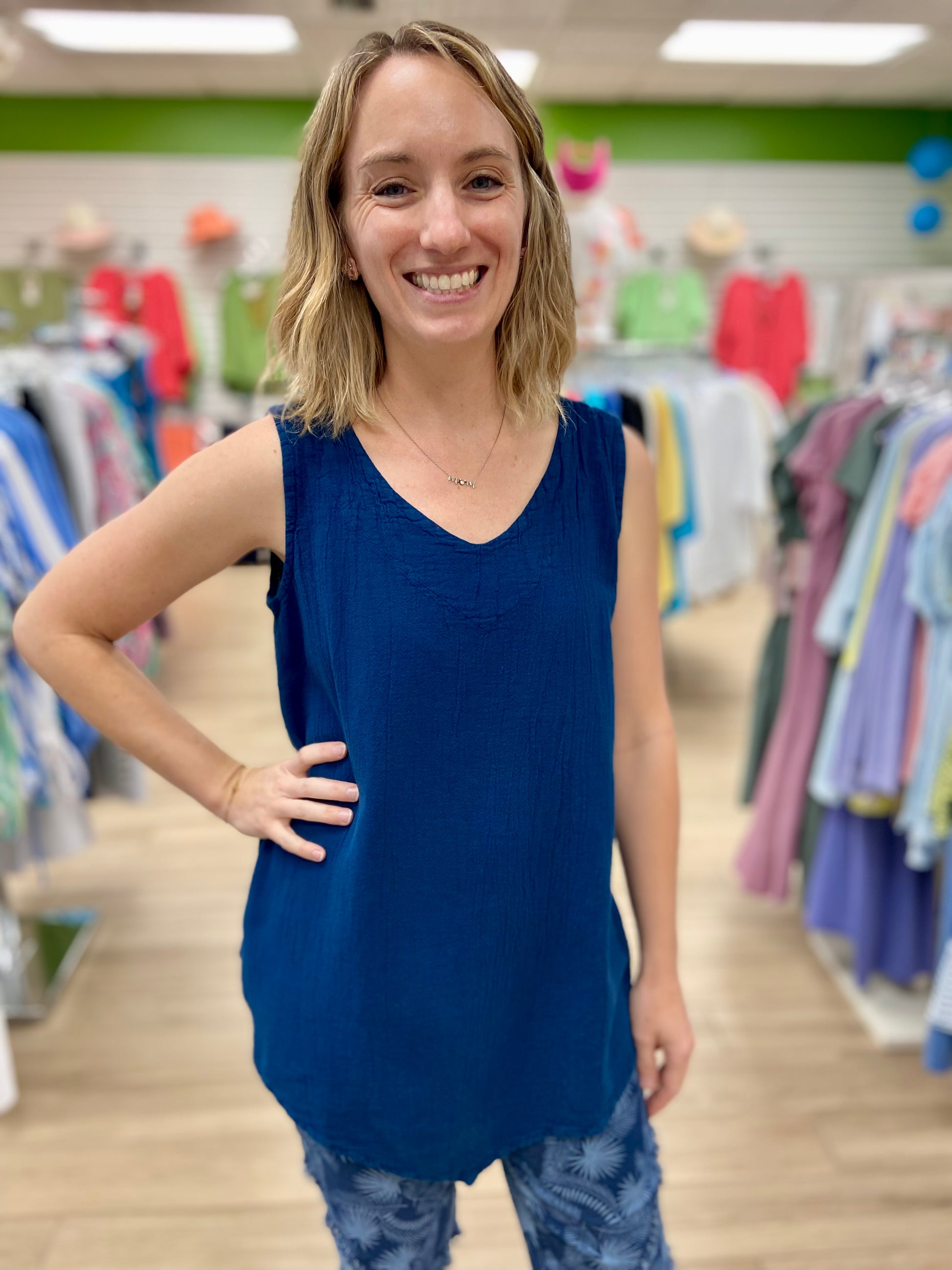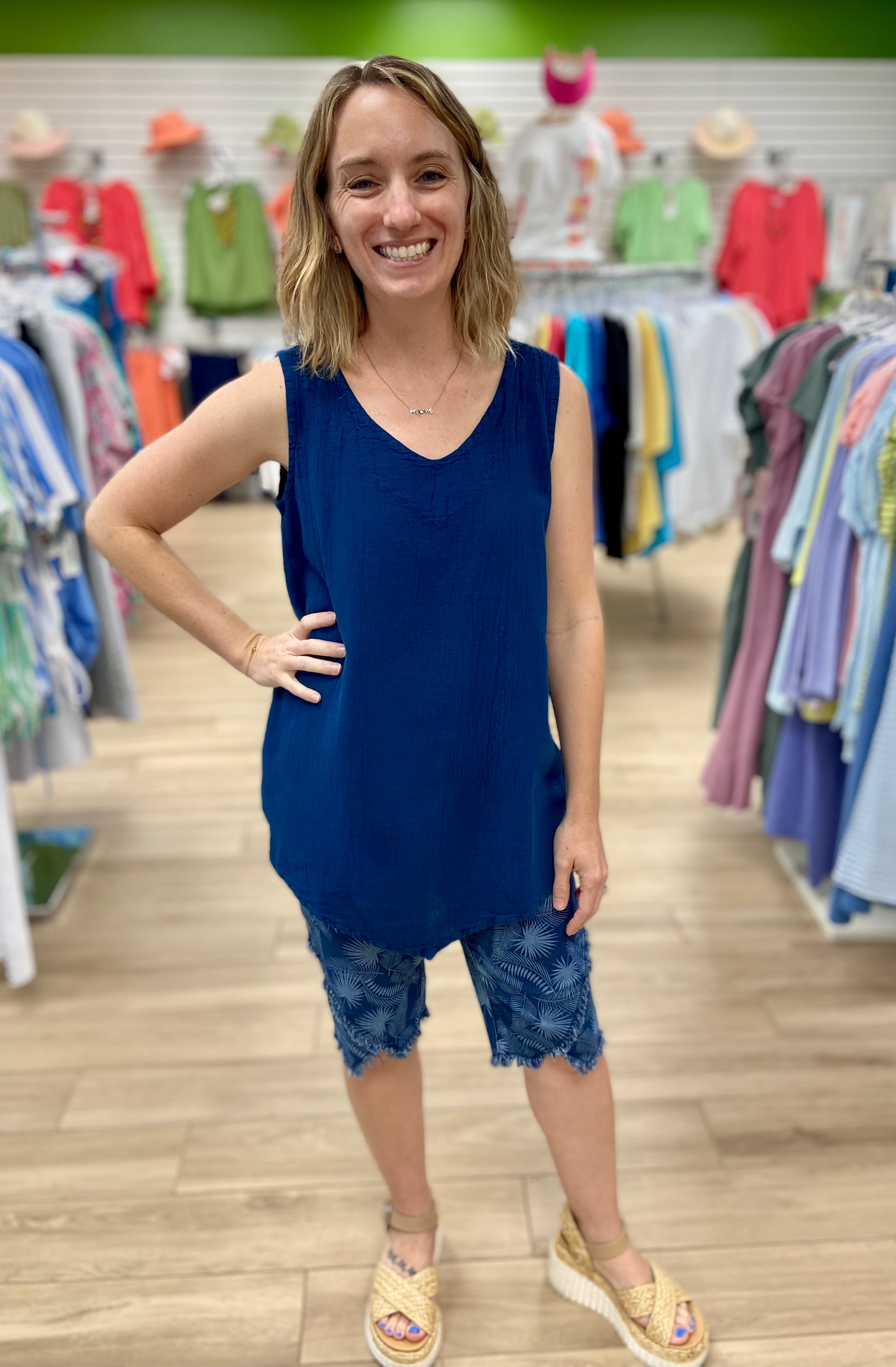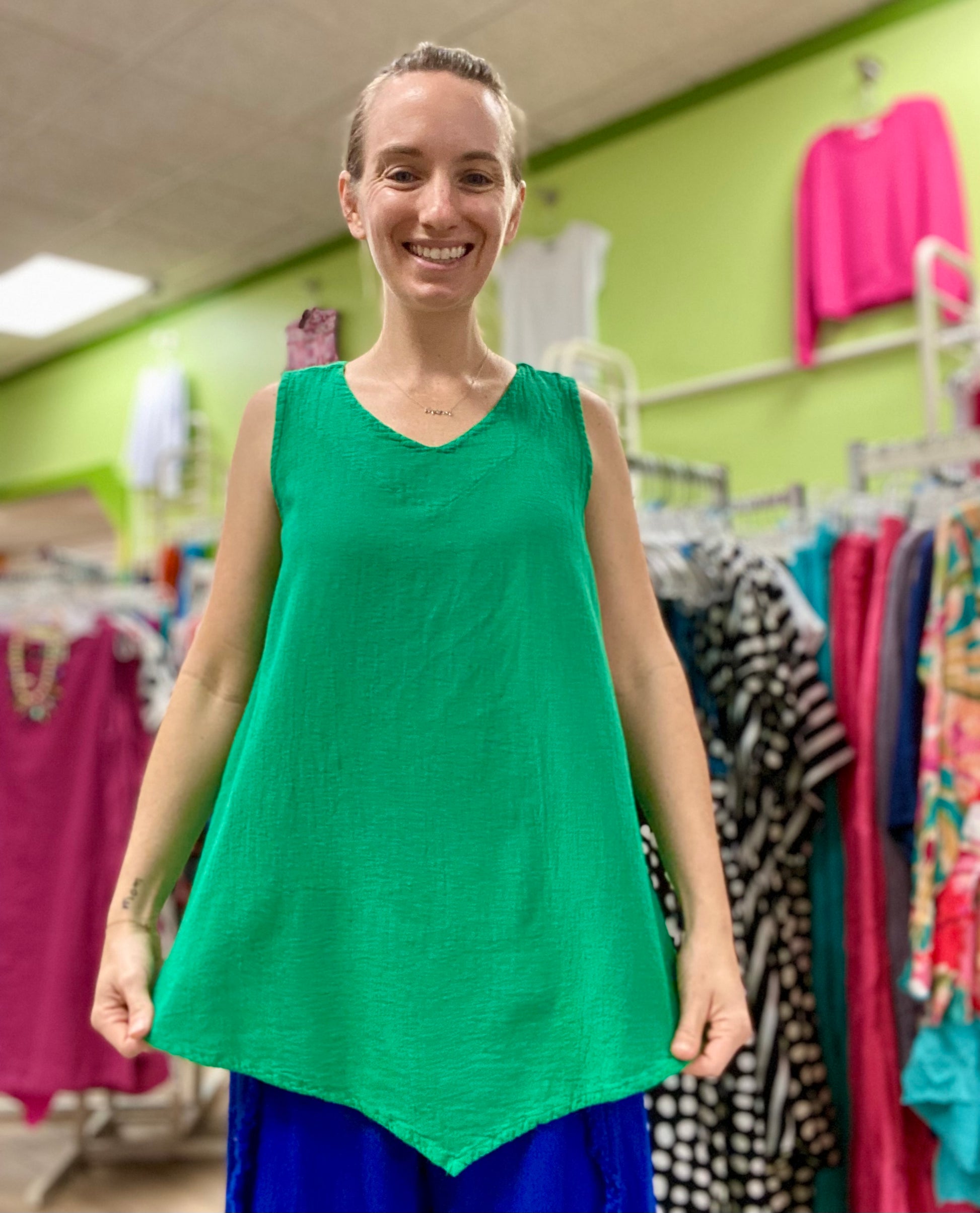 The pointed hem tank is sure to keep you cool & comfy all season long!