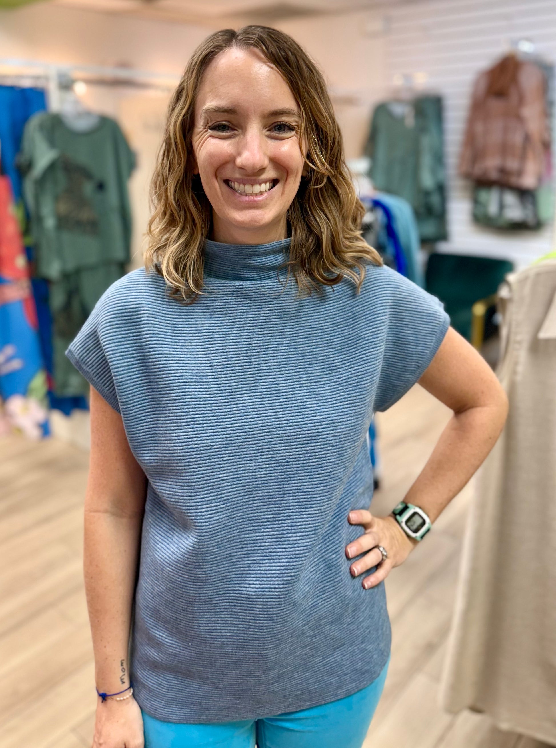 This cute short sleeve sweater will keep you stylish and comfy all season long!