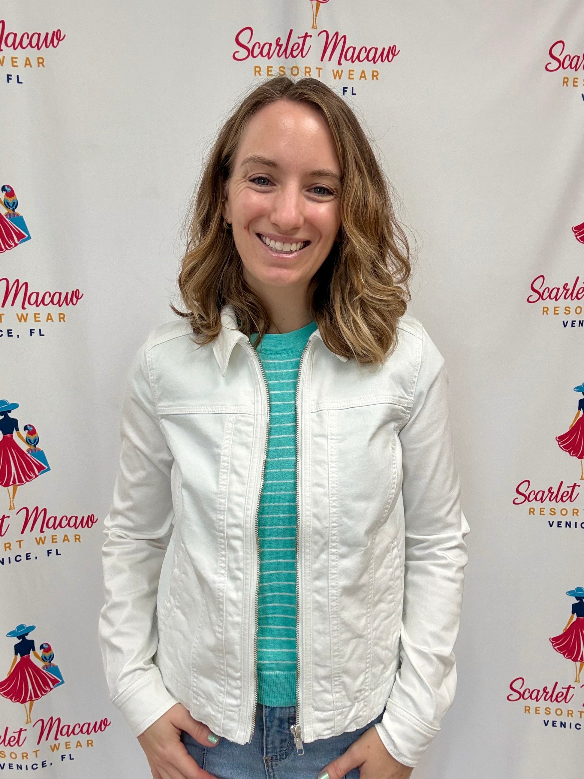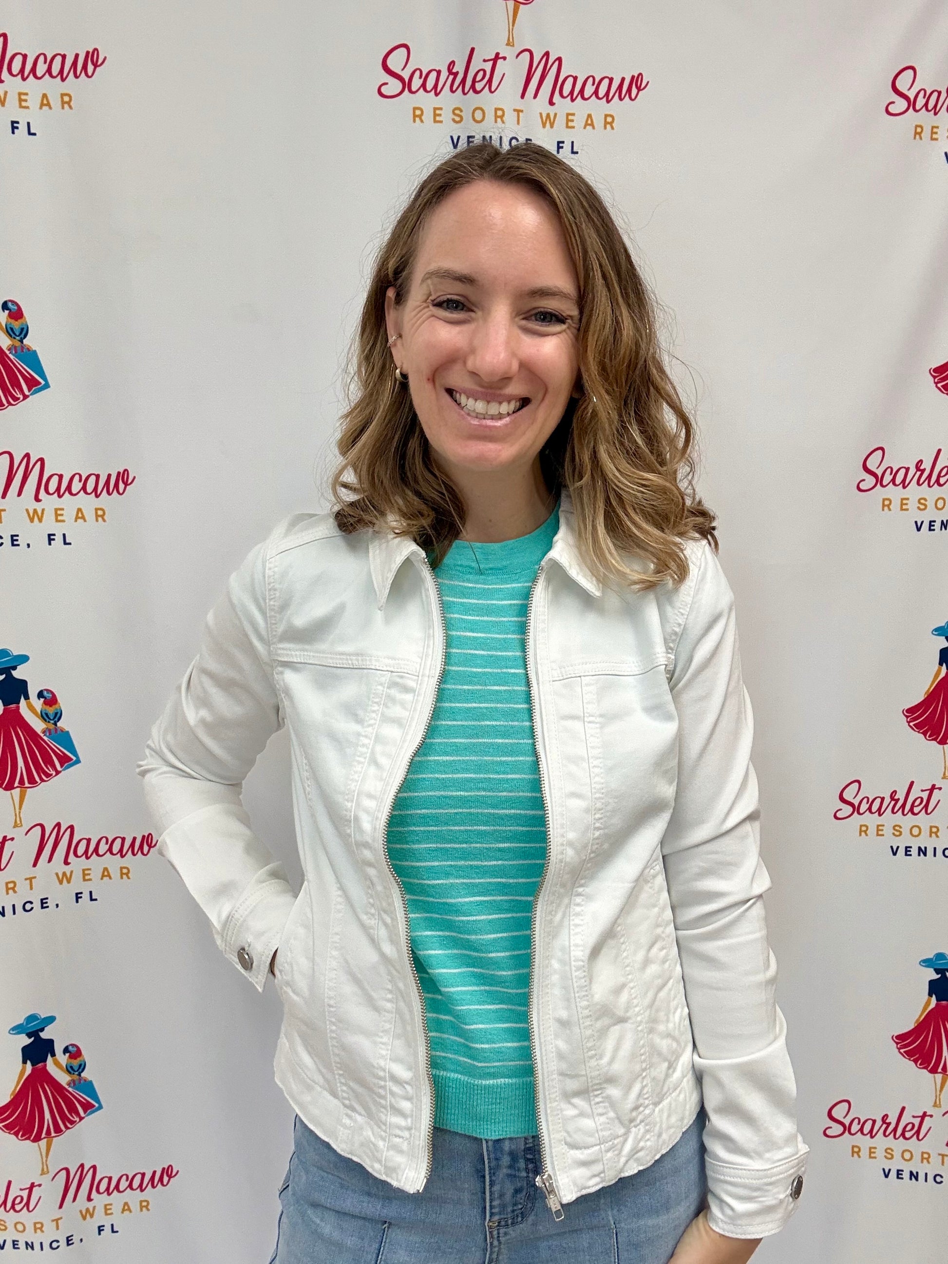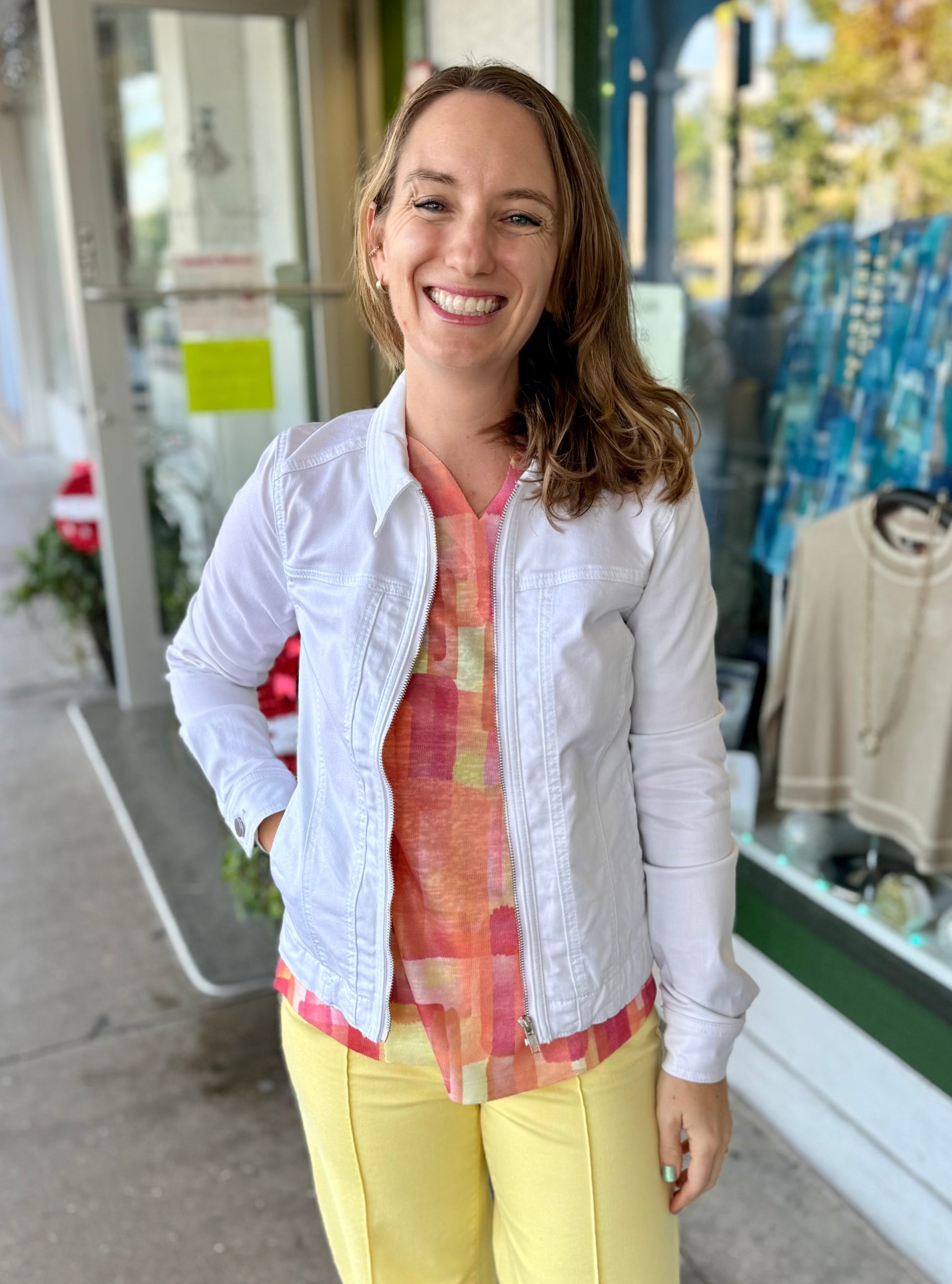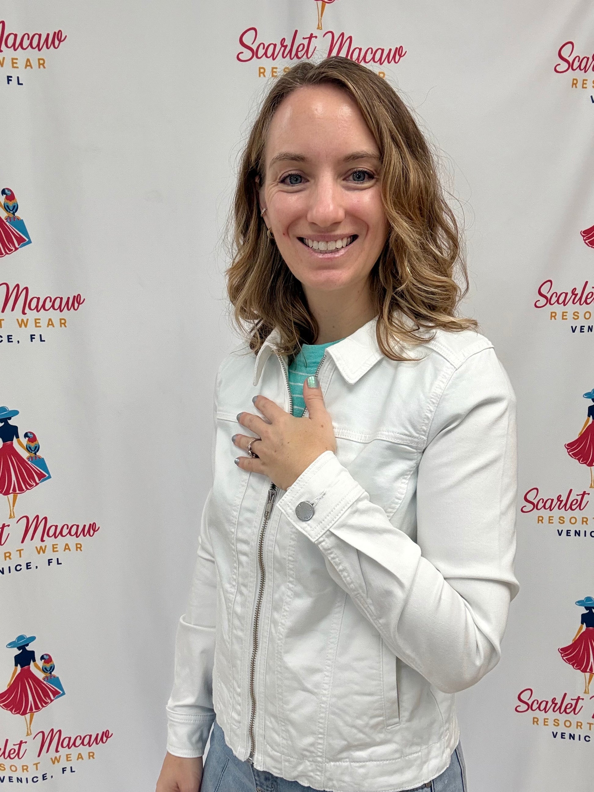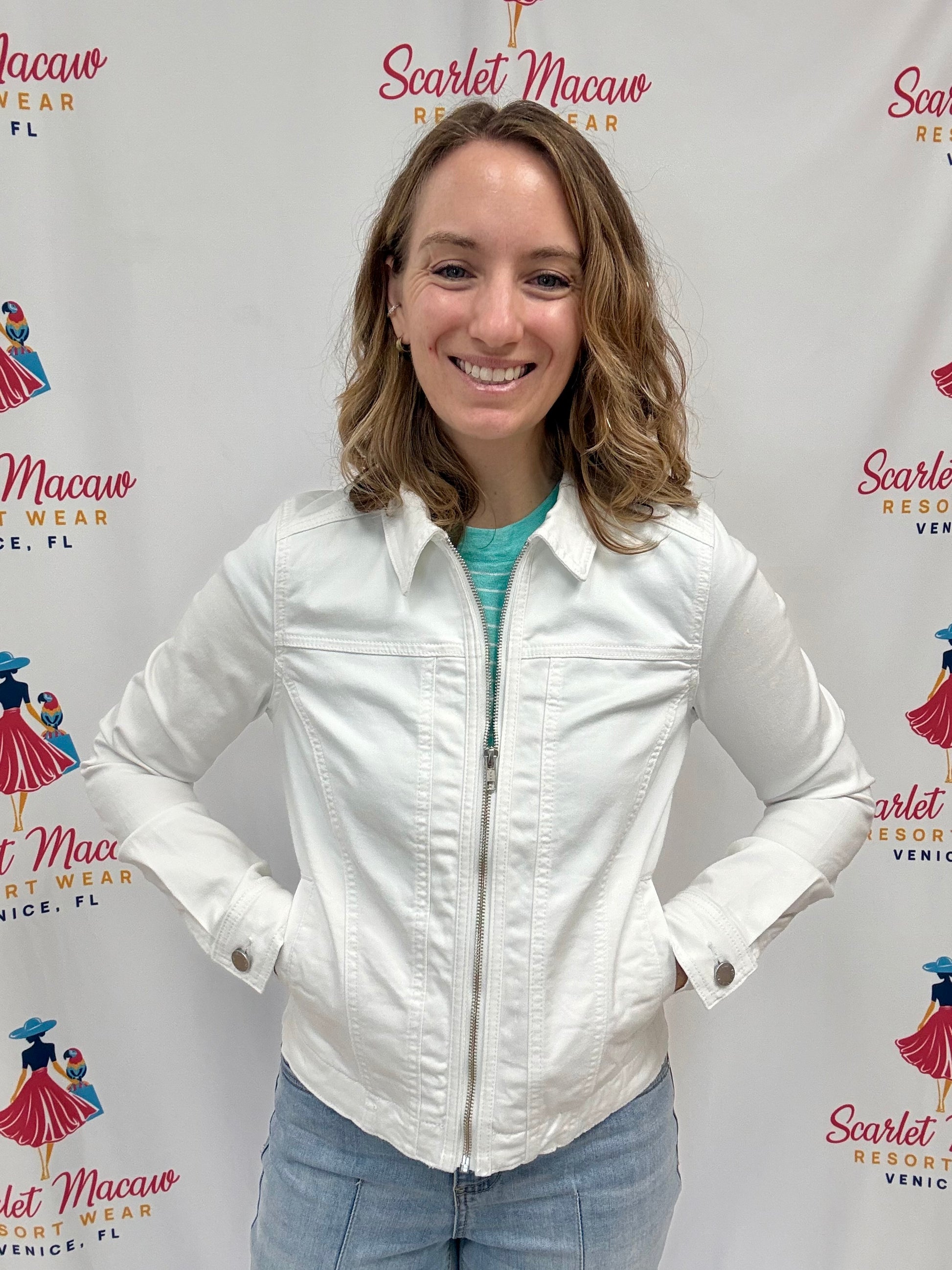Tons of stretch and details make this white denim jacket one you will reach for again and again!