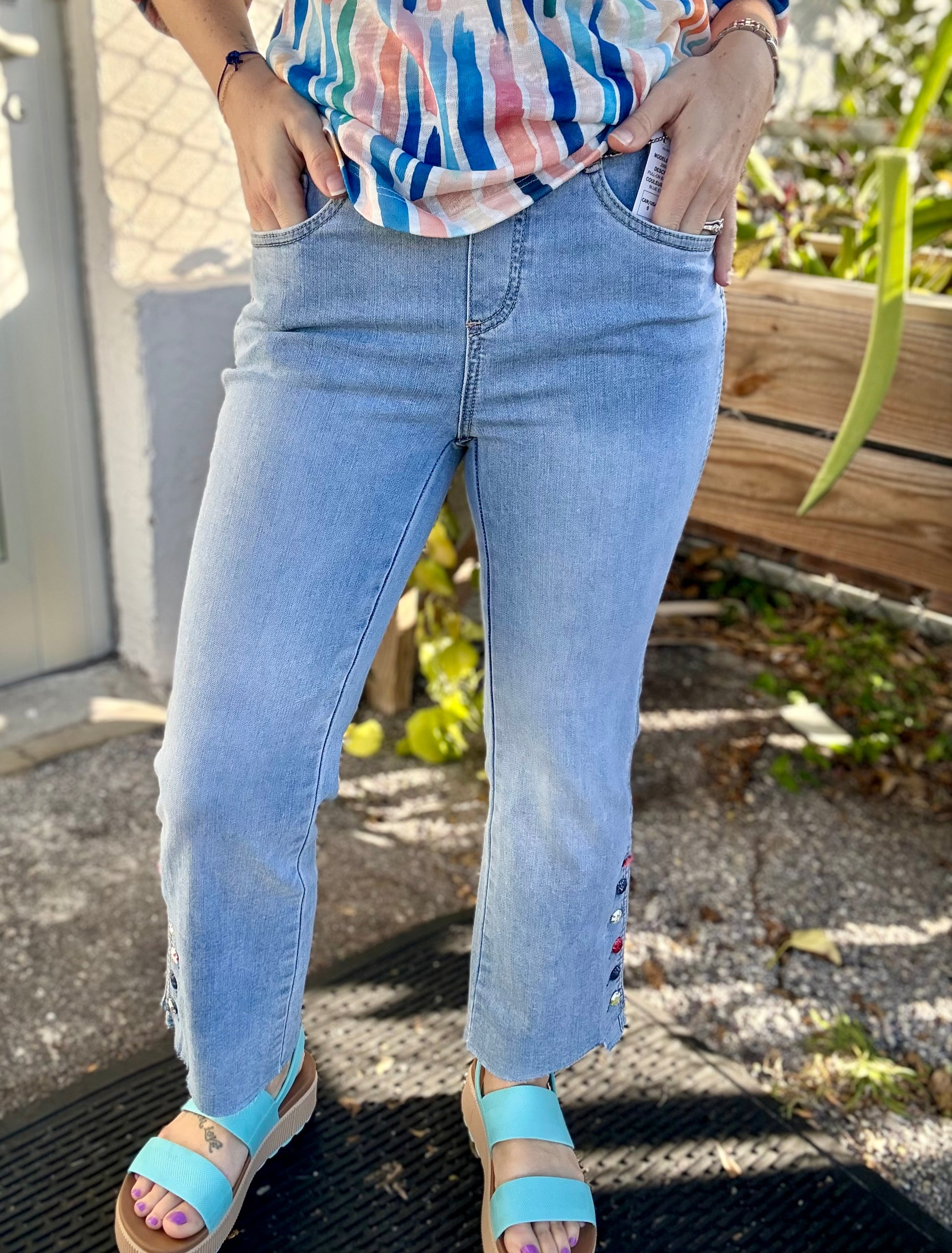 The buttons! How much fun are these cute pull on jeans? Stretchy and stylish - you can't go wrong!