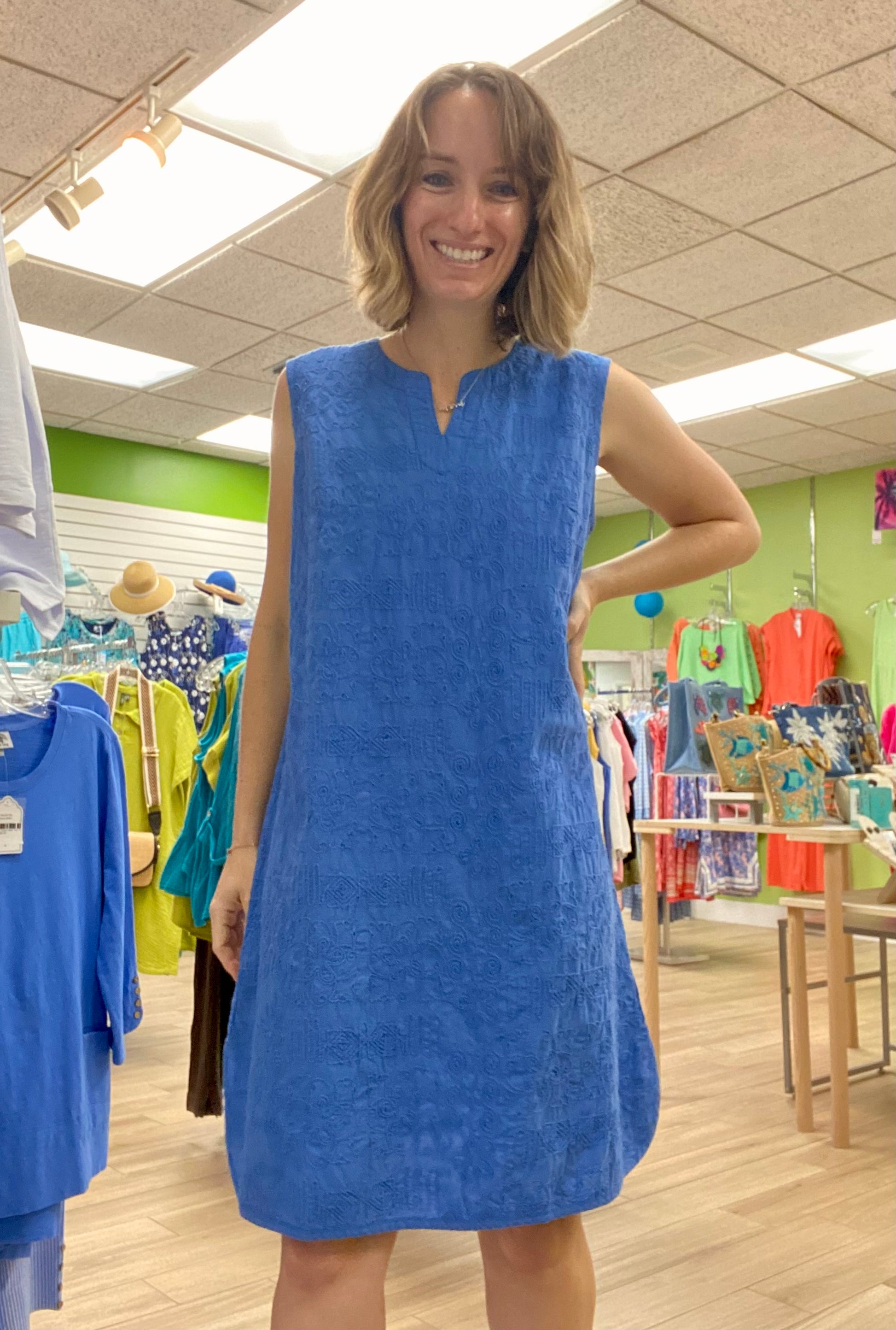 A beautiful embroidery makes this great cotton shift one you will reach for over and over!