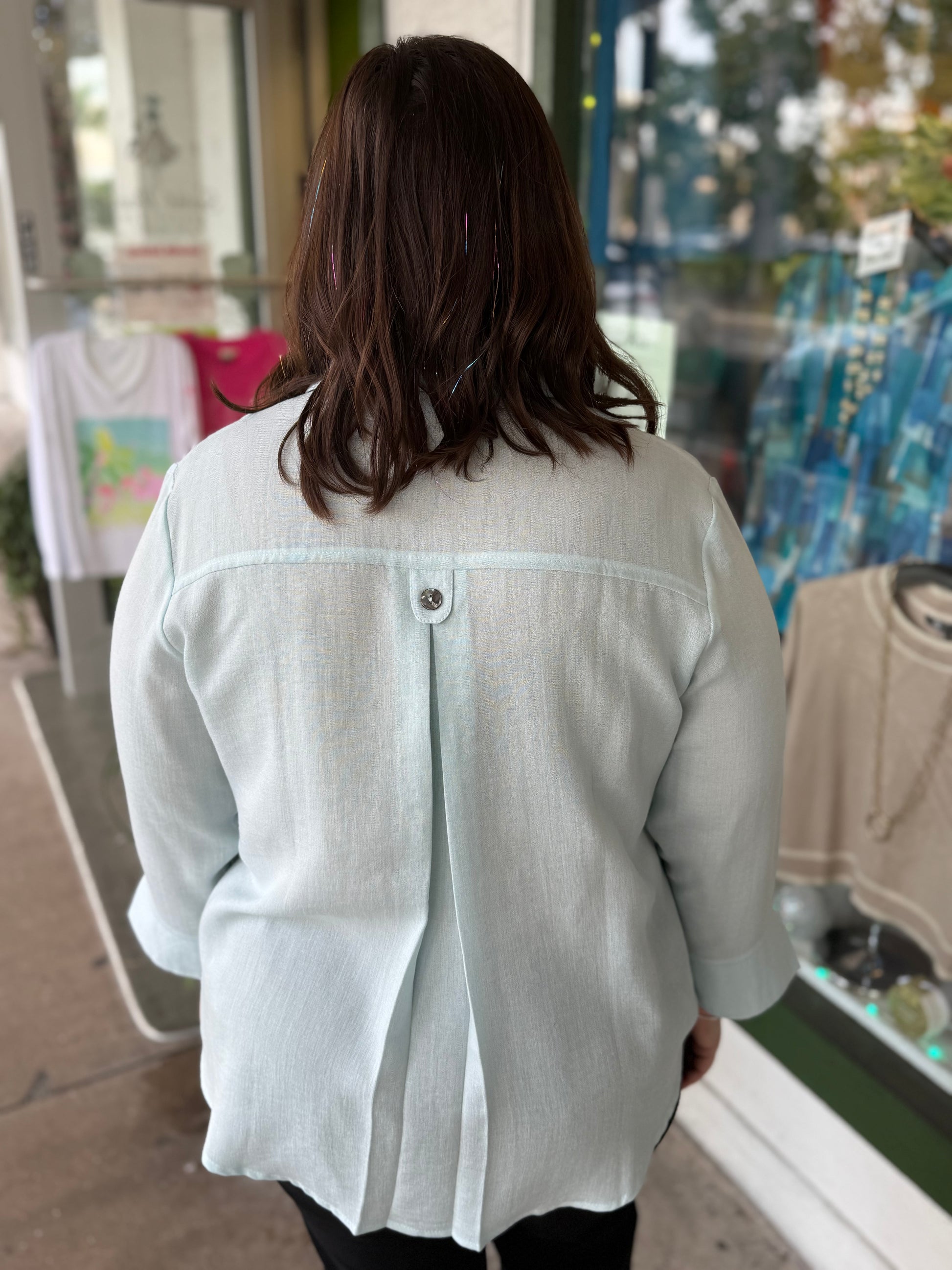 Whether you want to tab the side up for a cute cinched look or wear it longer you can't go wrong in this wrinkle free linen top!