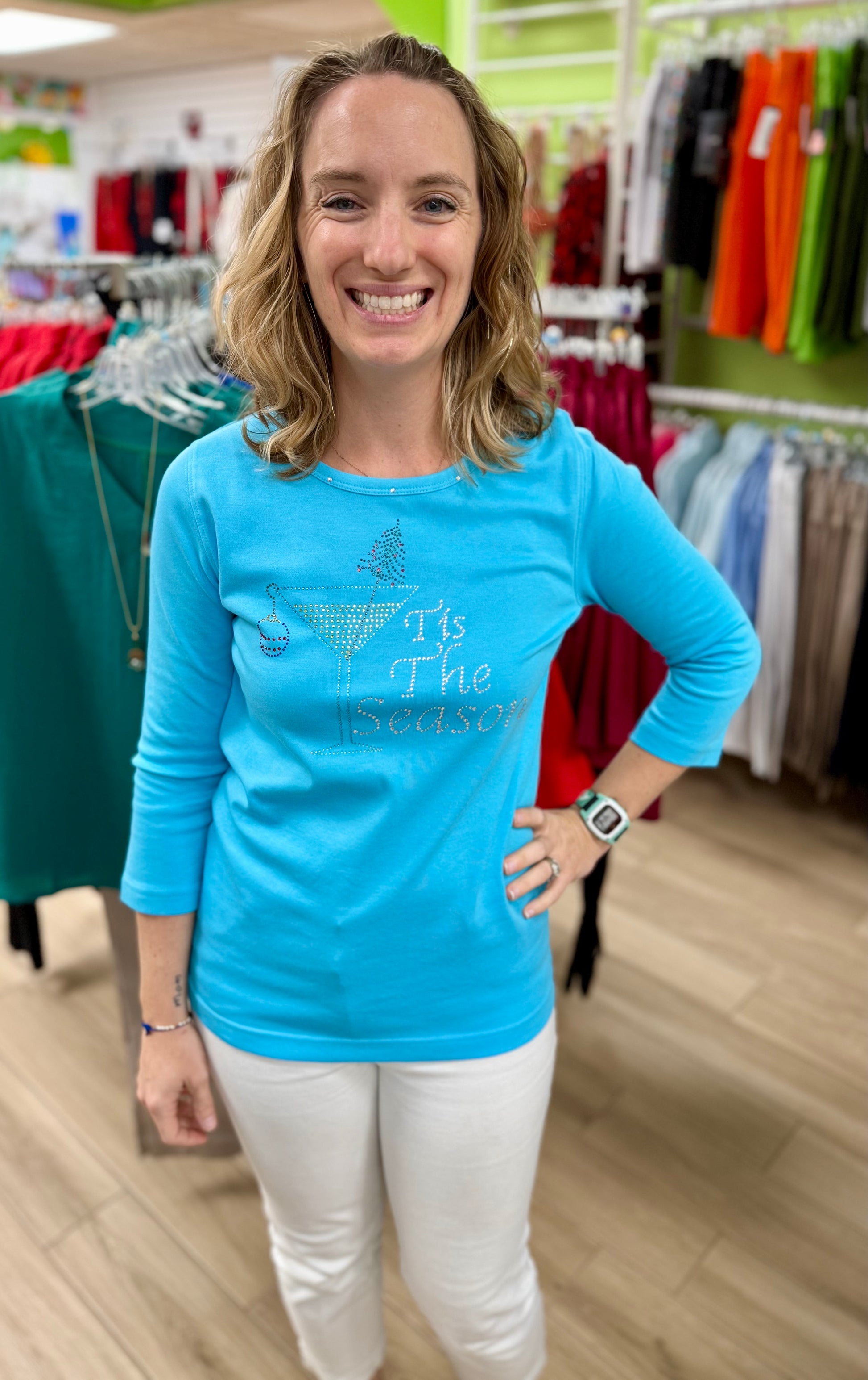 No time for Grinches - get your merry on in this sparkly tee featuring a festive drink!