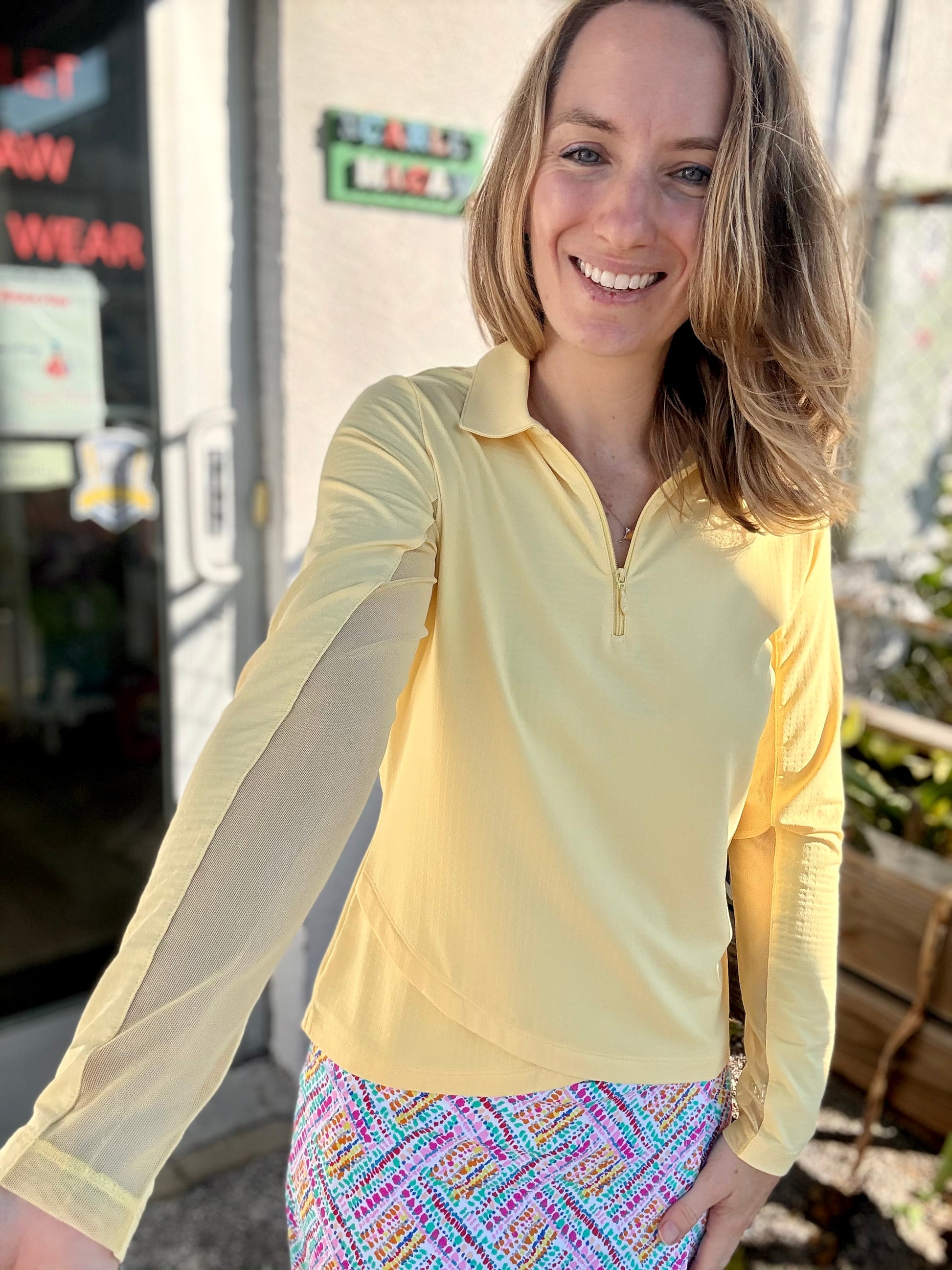 Stay sun safe and cool in these great mesh arm tops by Ibkul! The Layered look at the bottom adds an extra touch of style!