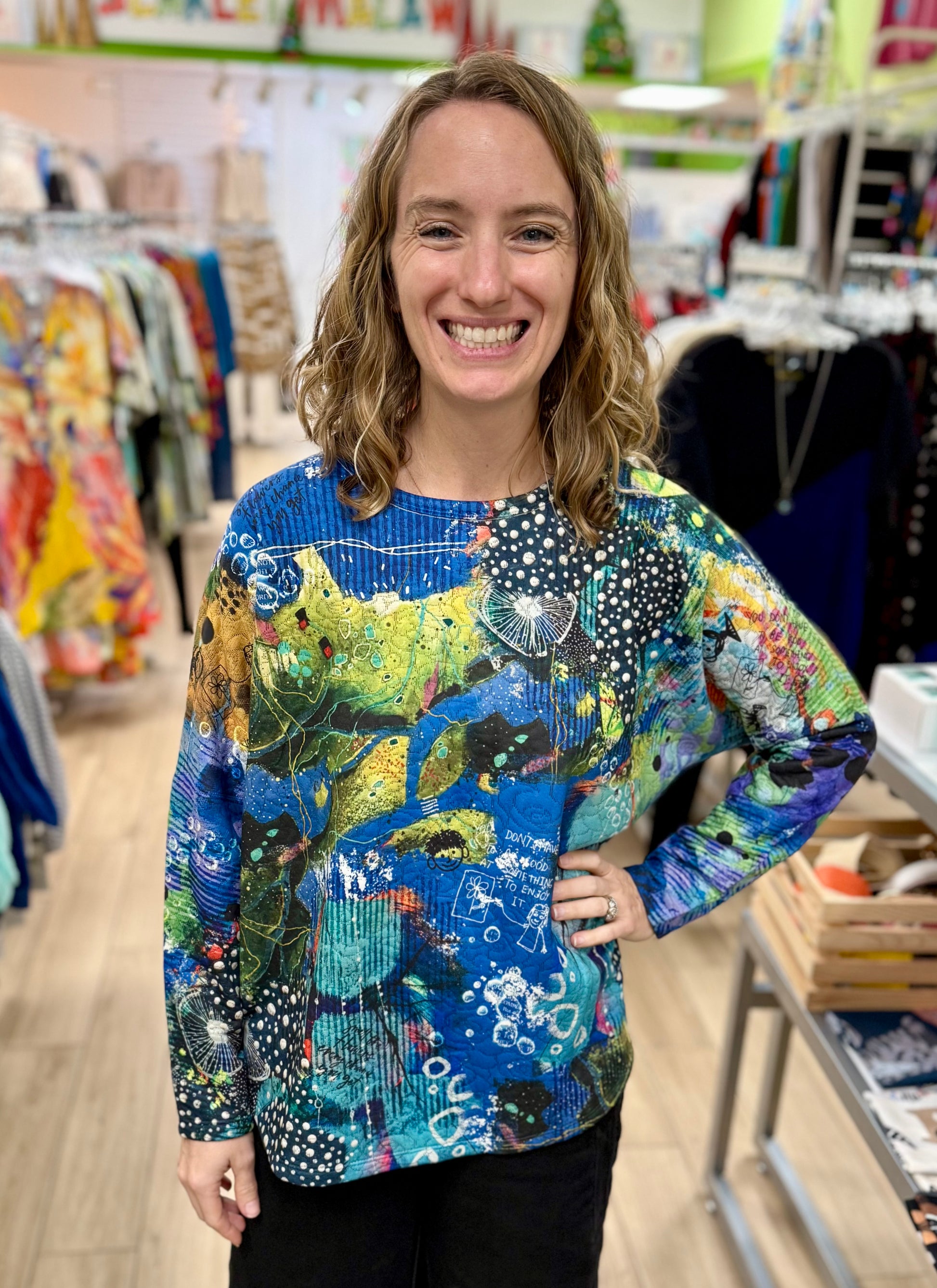A happy bold print is sure to make you smile as you enjoy a comfy day in this fun oversized top!
