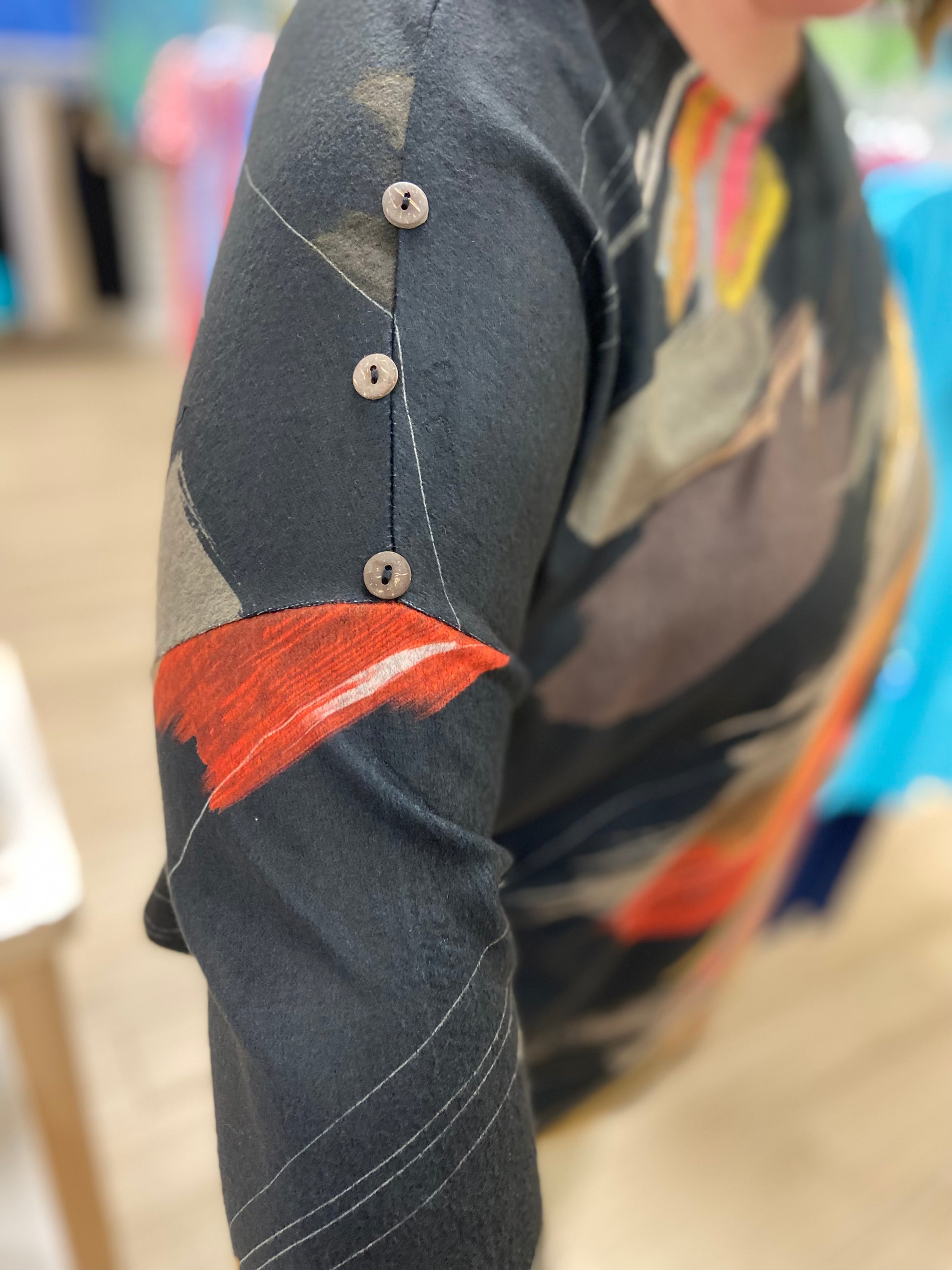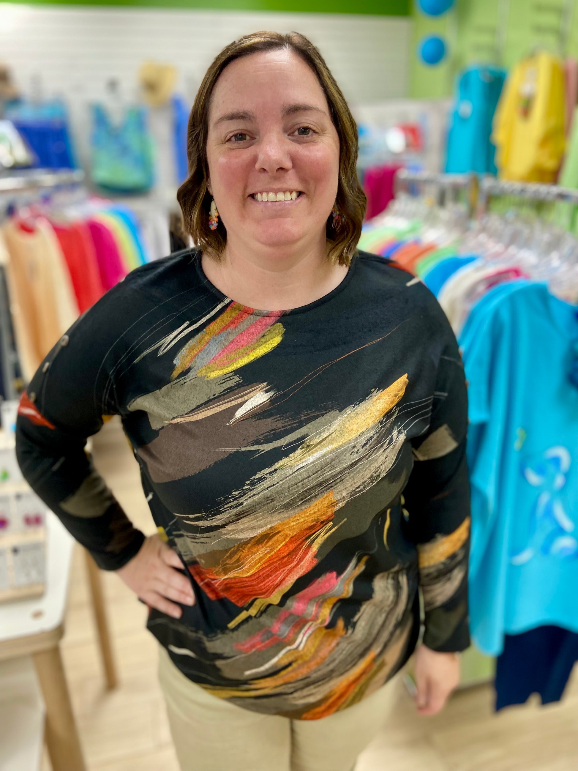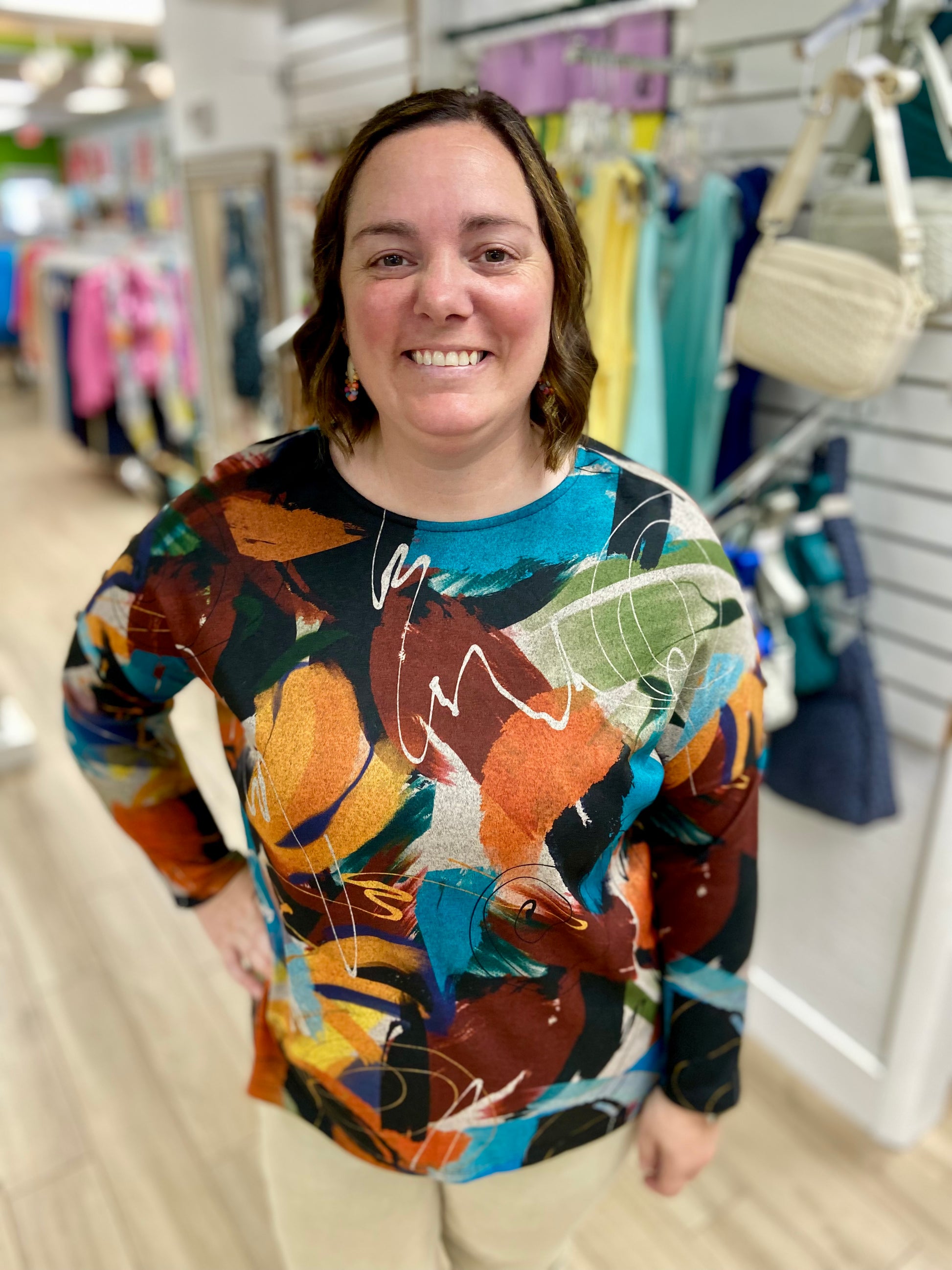 This shirt is as cozy and soft as it is fun & funky! The drop shoulder style combined with a relaxed fit is perfect for leggings or skinny jeans this fall!