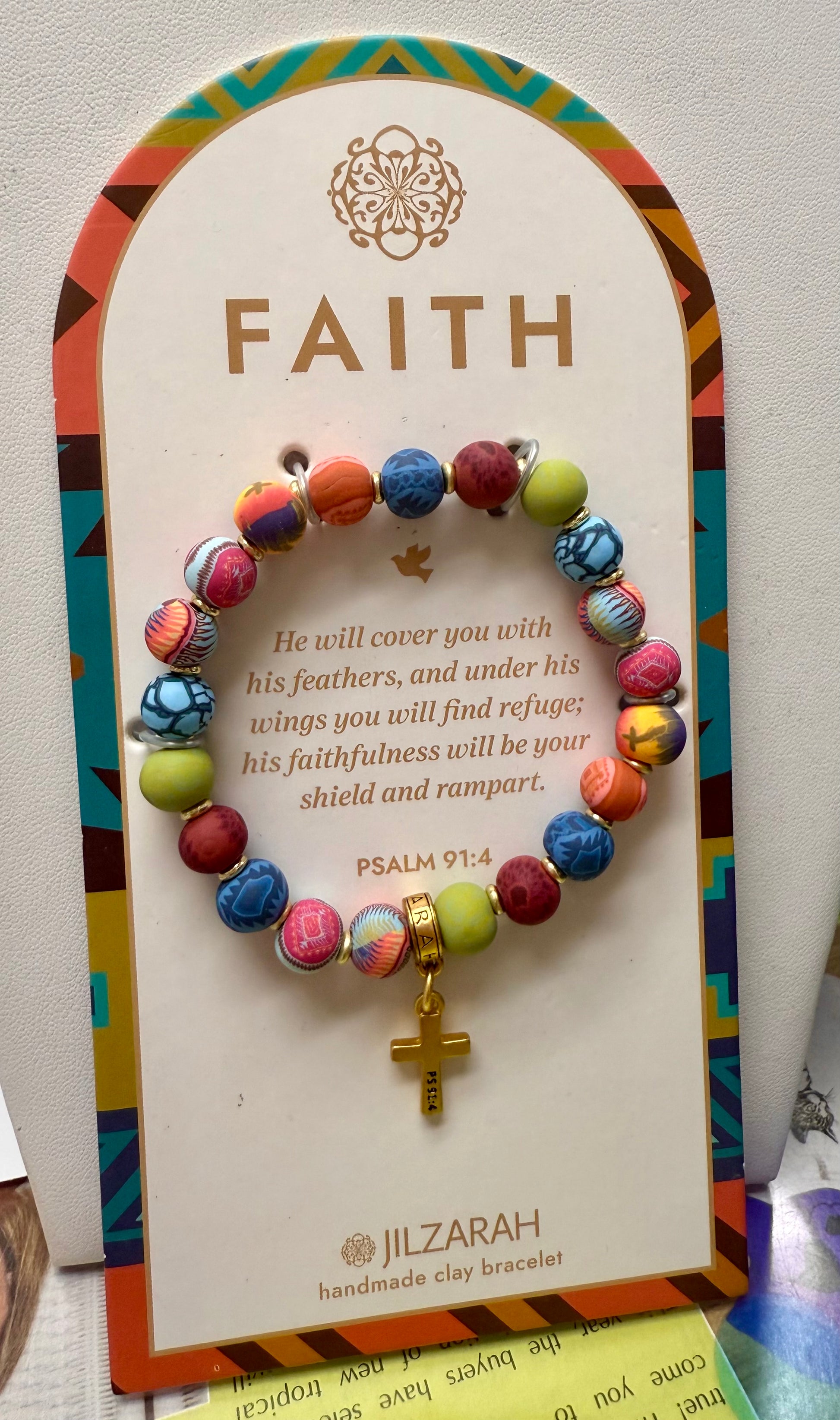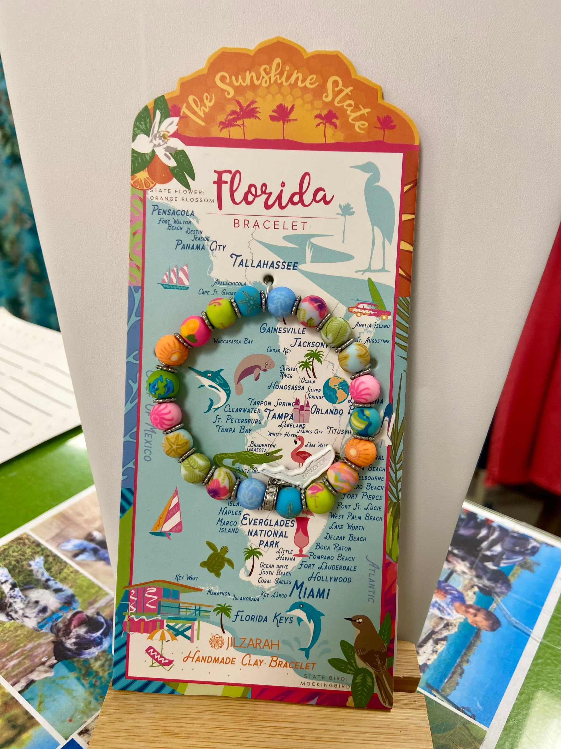 - Handcrafted 8mm polymer clay beads and a charm on a durable 1.2mm elastic cord