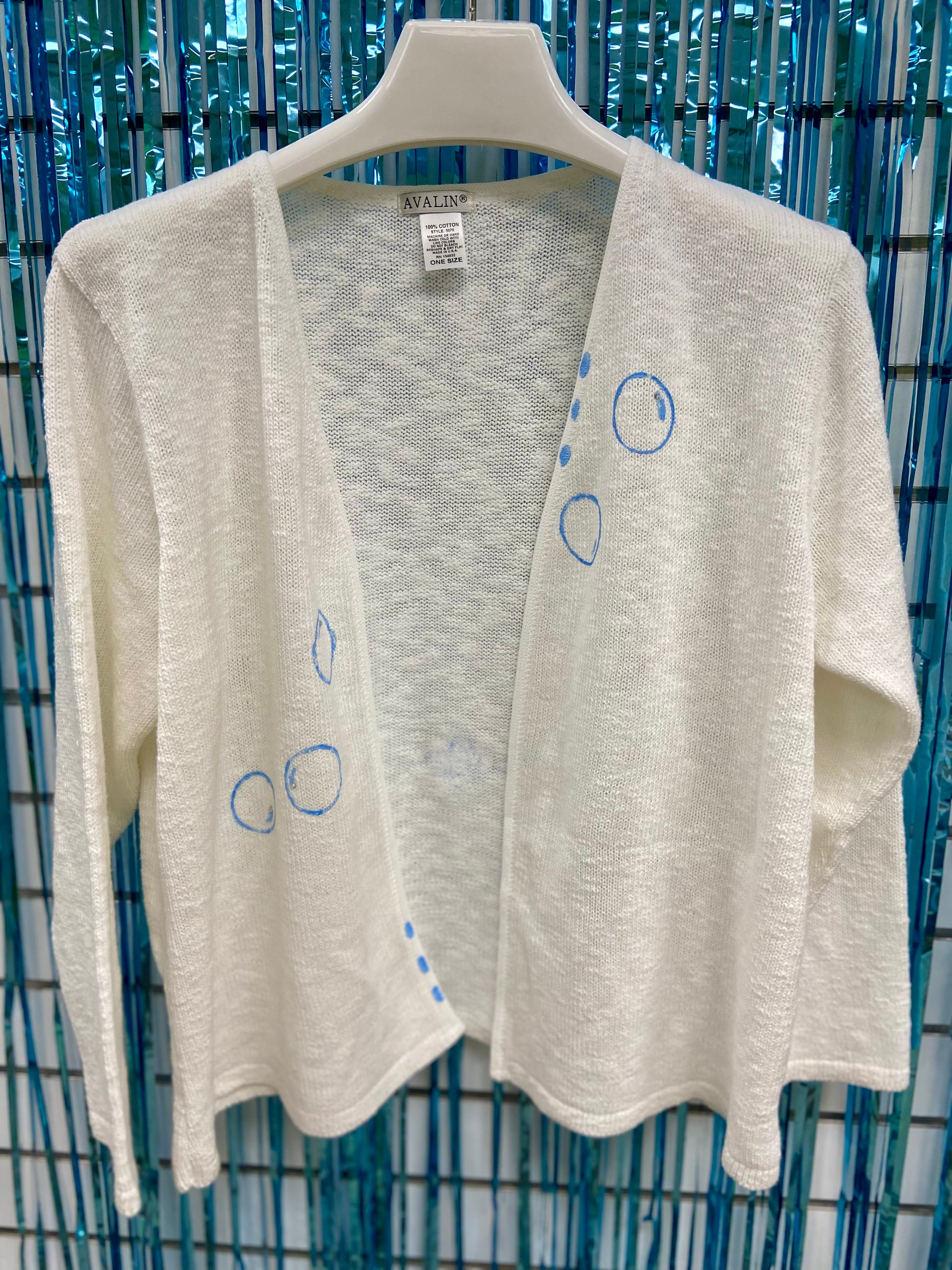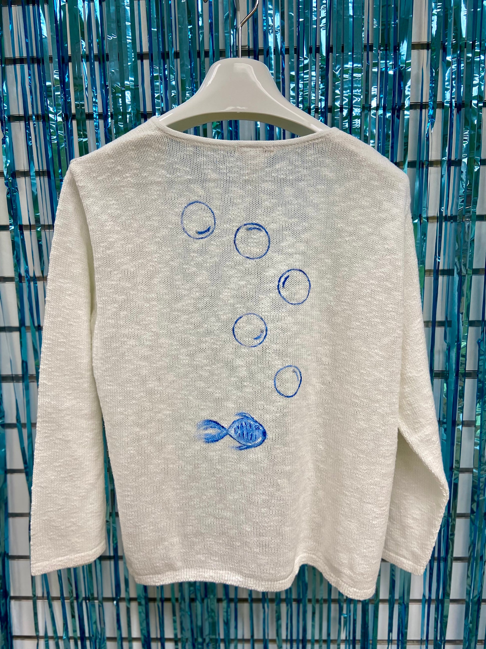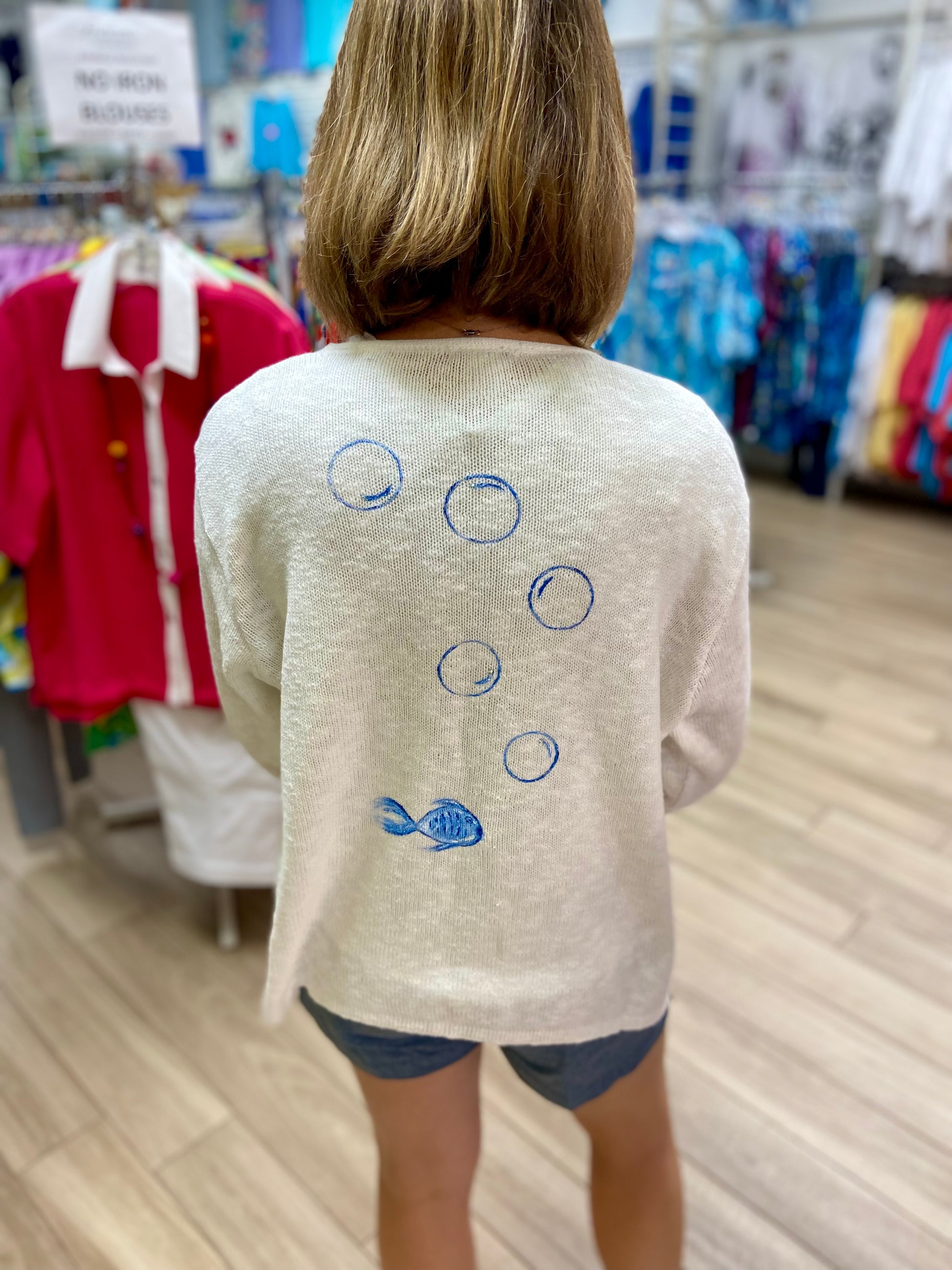 Life is the bubbles in these cute hand-painted sweaters by a Venice, FL artist! There are matching bubbles painted on the other side too!