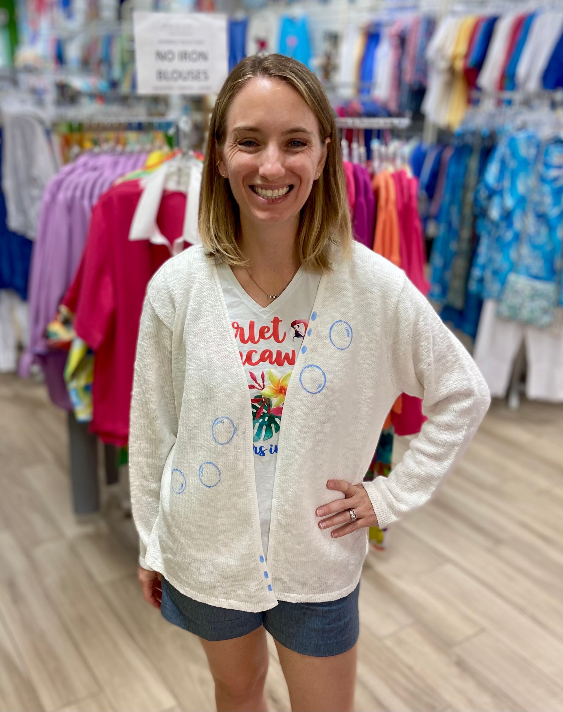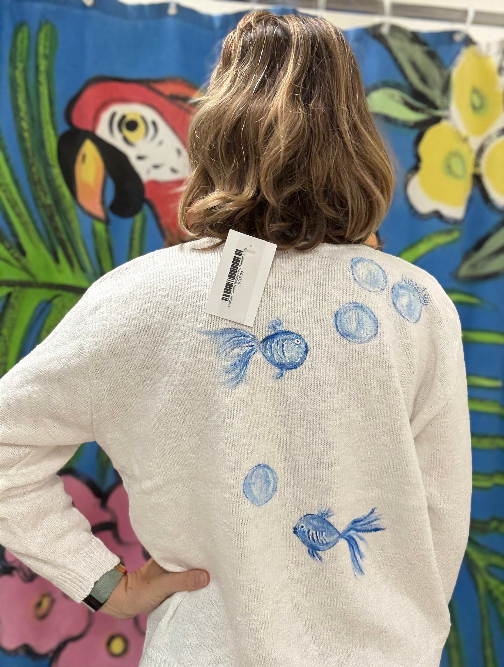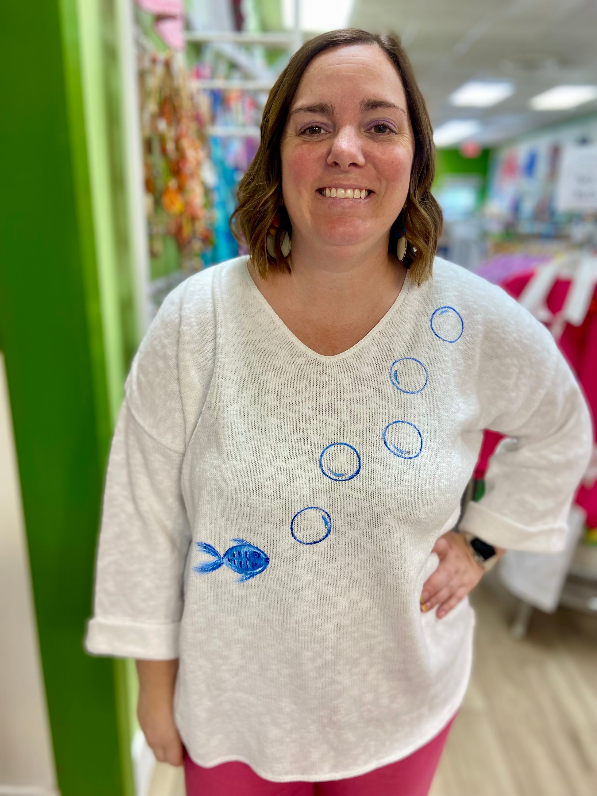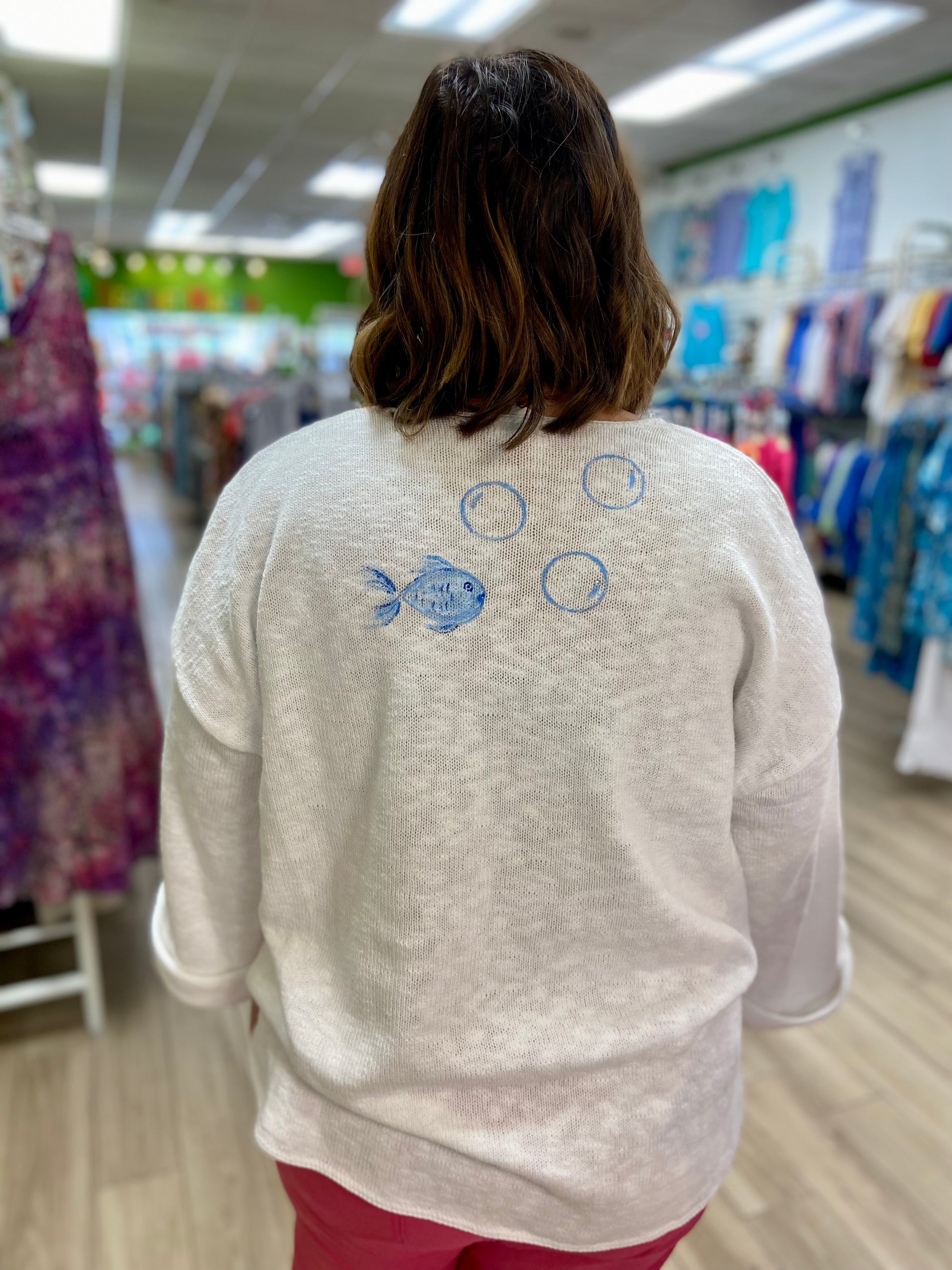 Life is the bubbles in these cute hand-painted sweaters by a Venice, FL artist! There are matching bubbles painted on the other side too!