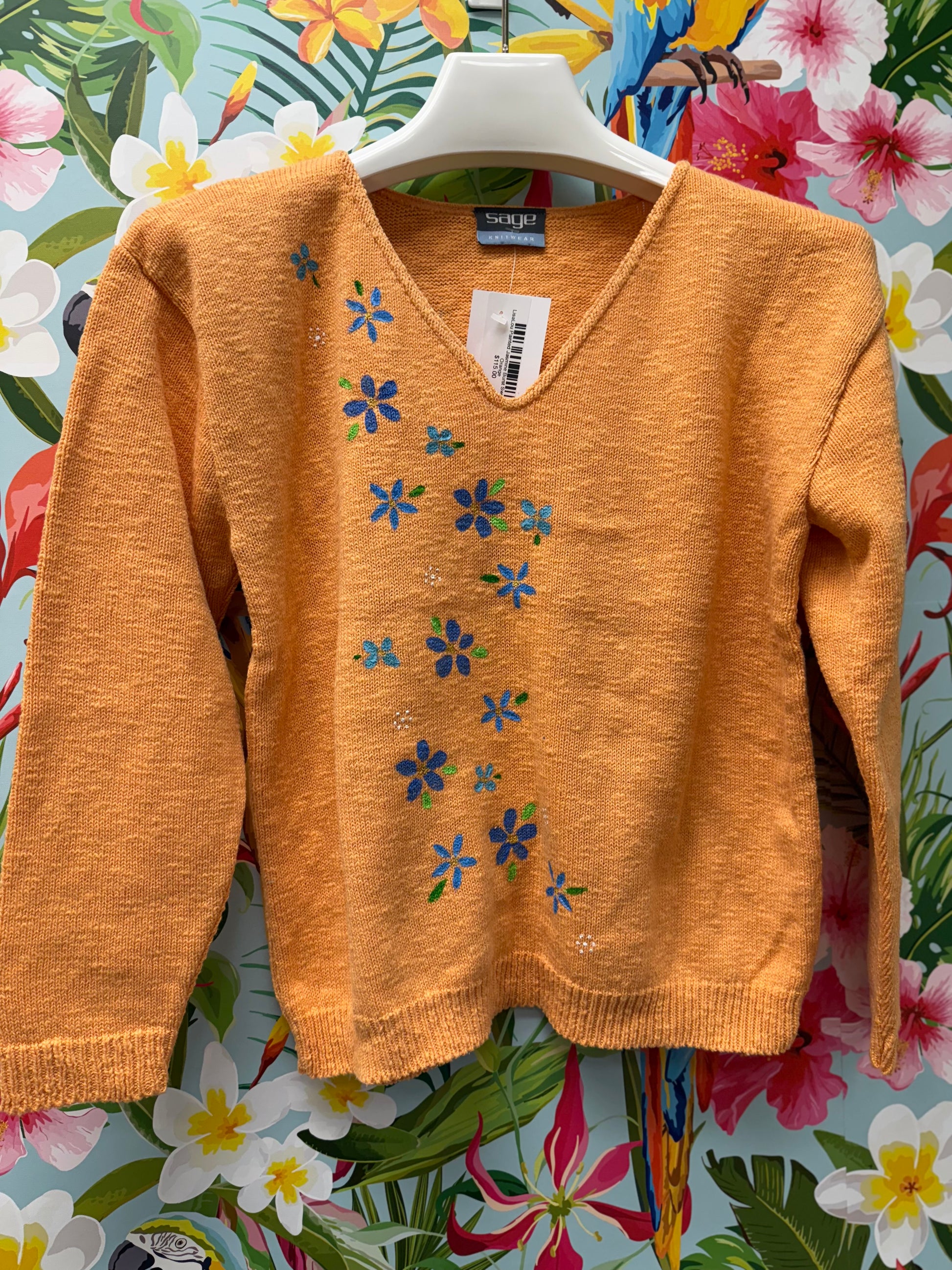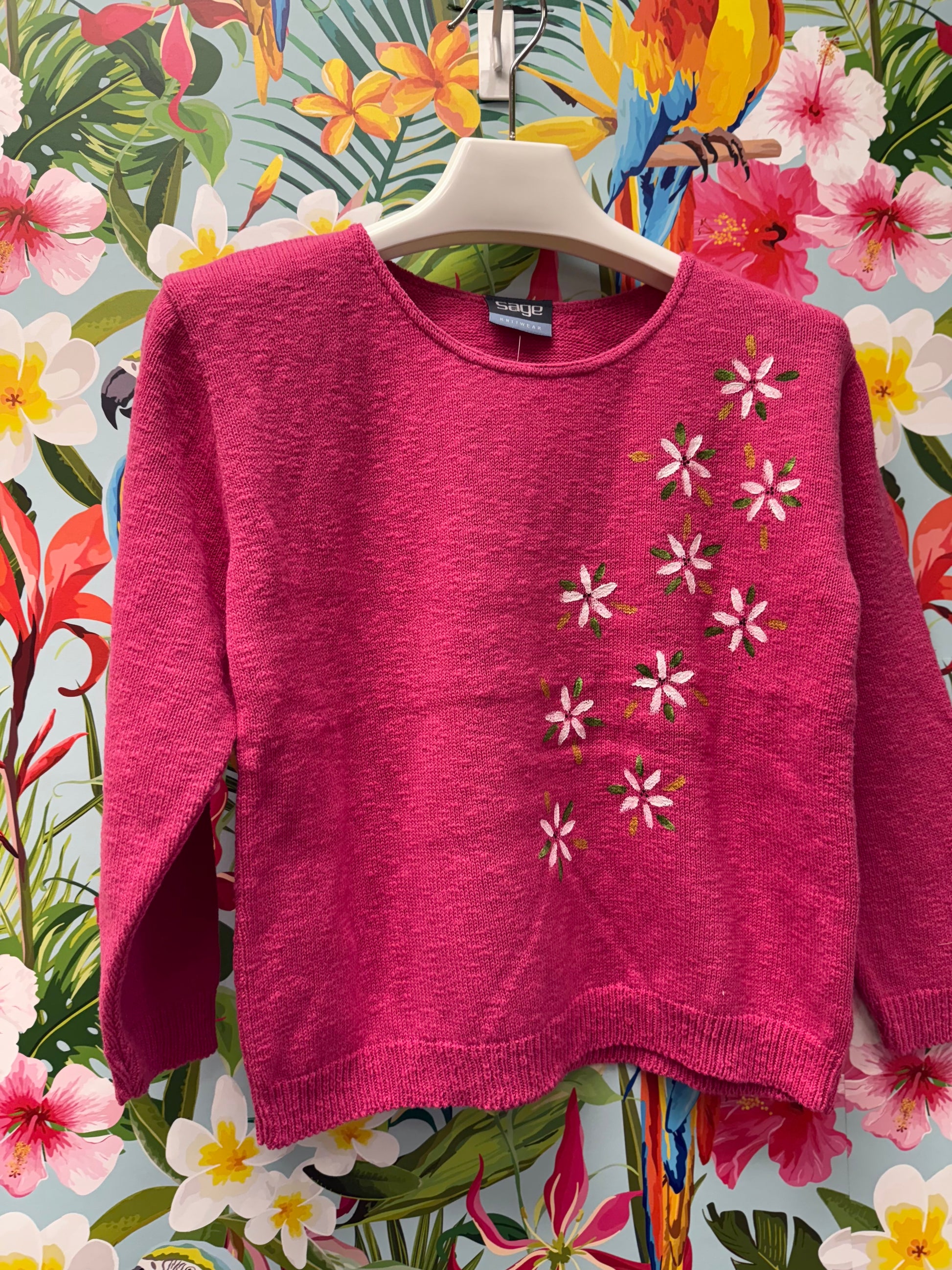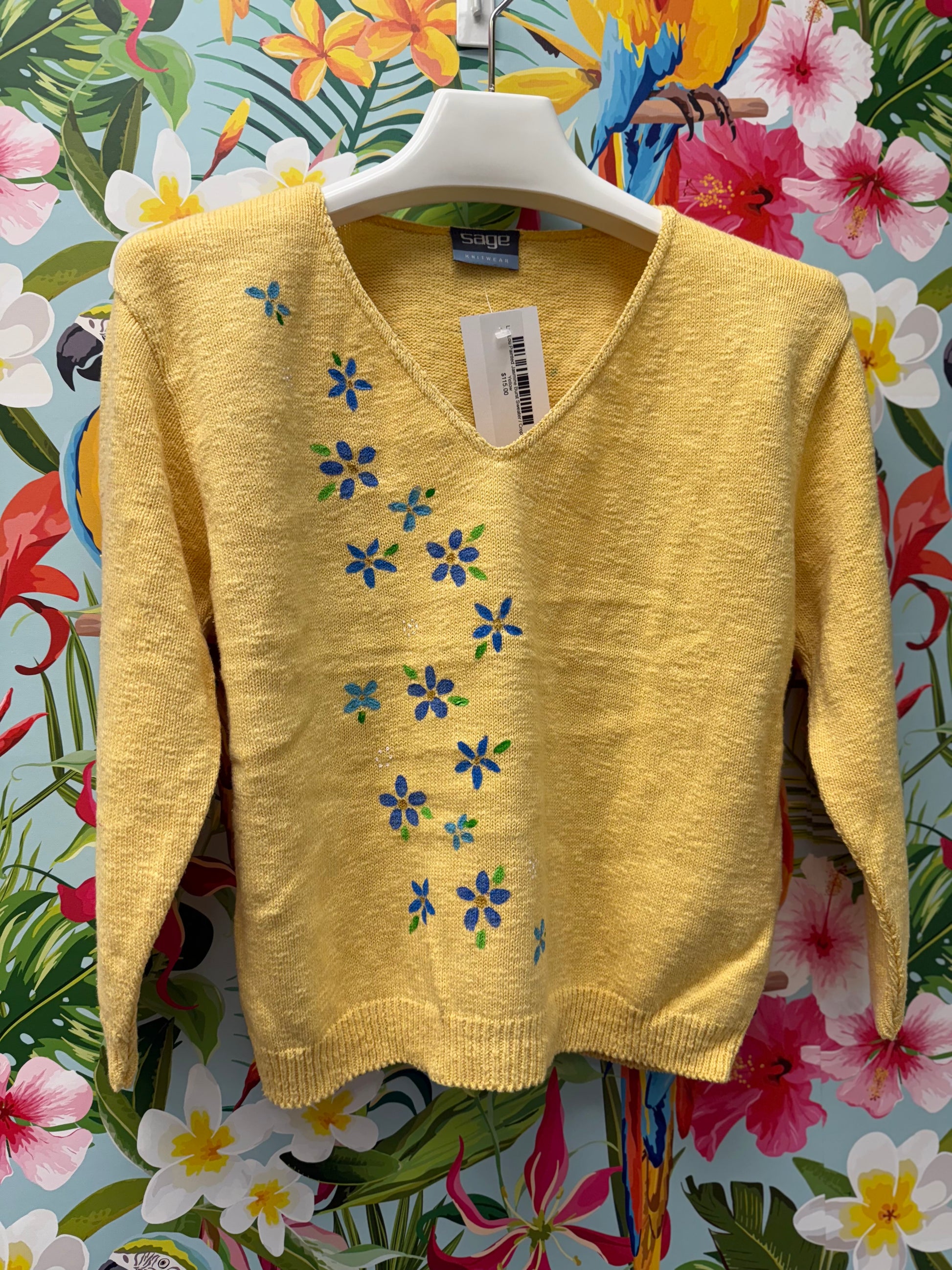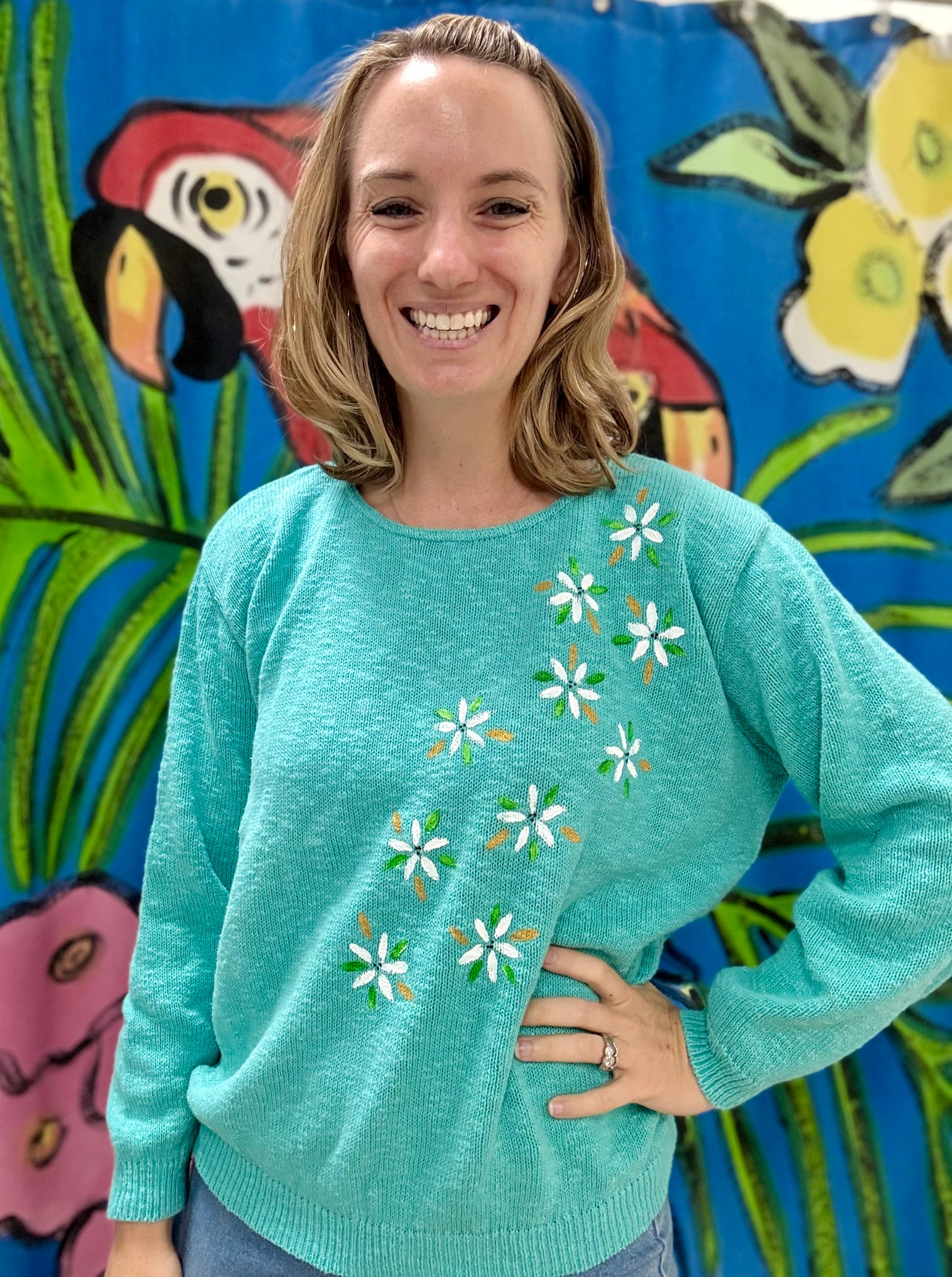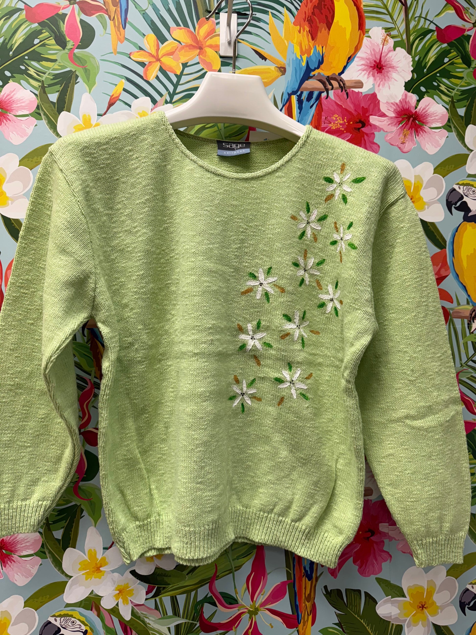 Imagine breathing in the refreshing jasmine scent as you wear this lovely hand-painted sweater. Matching artwork is on the back too!