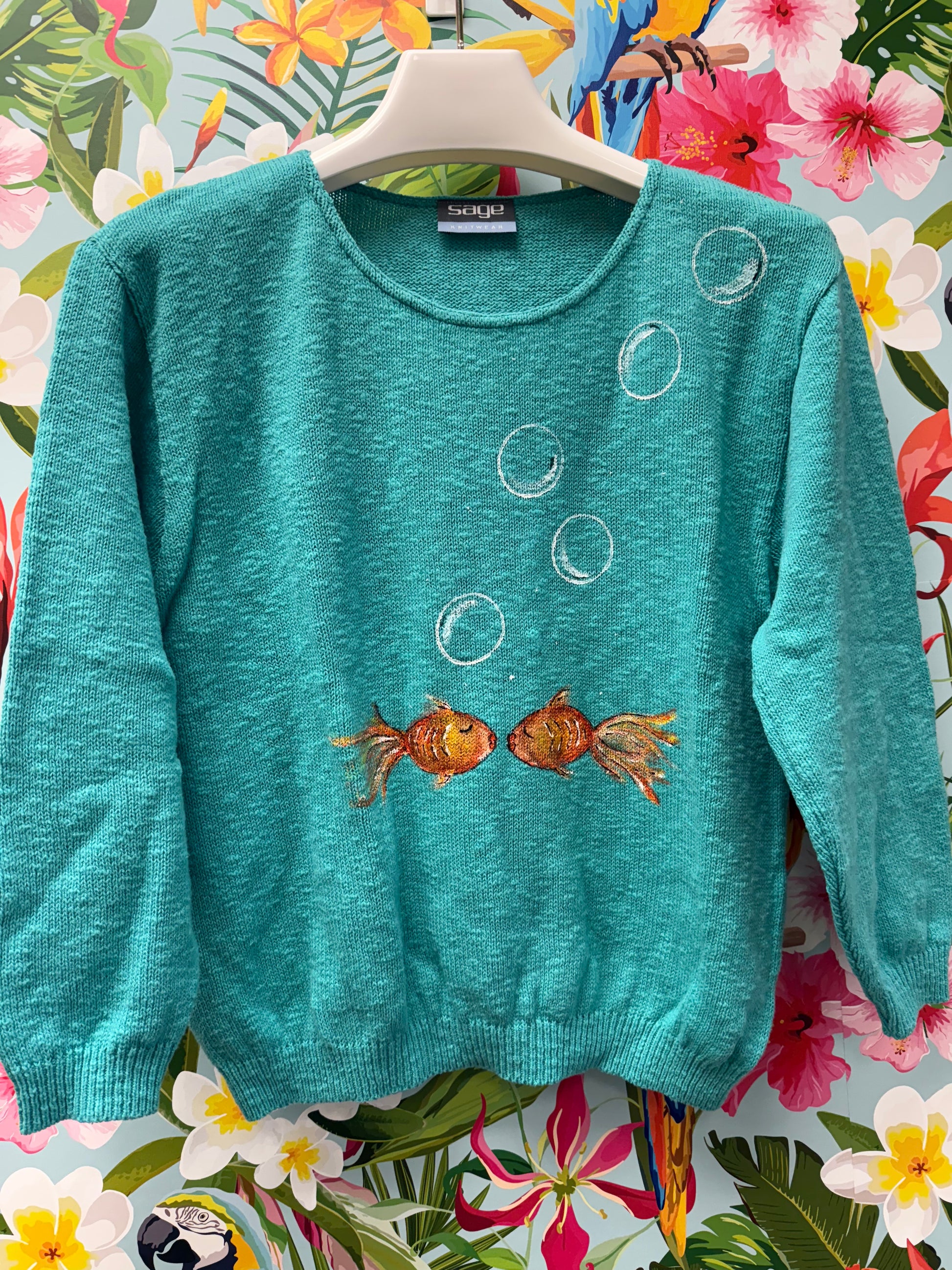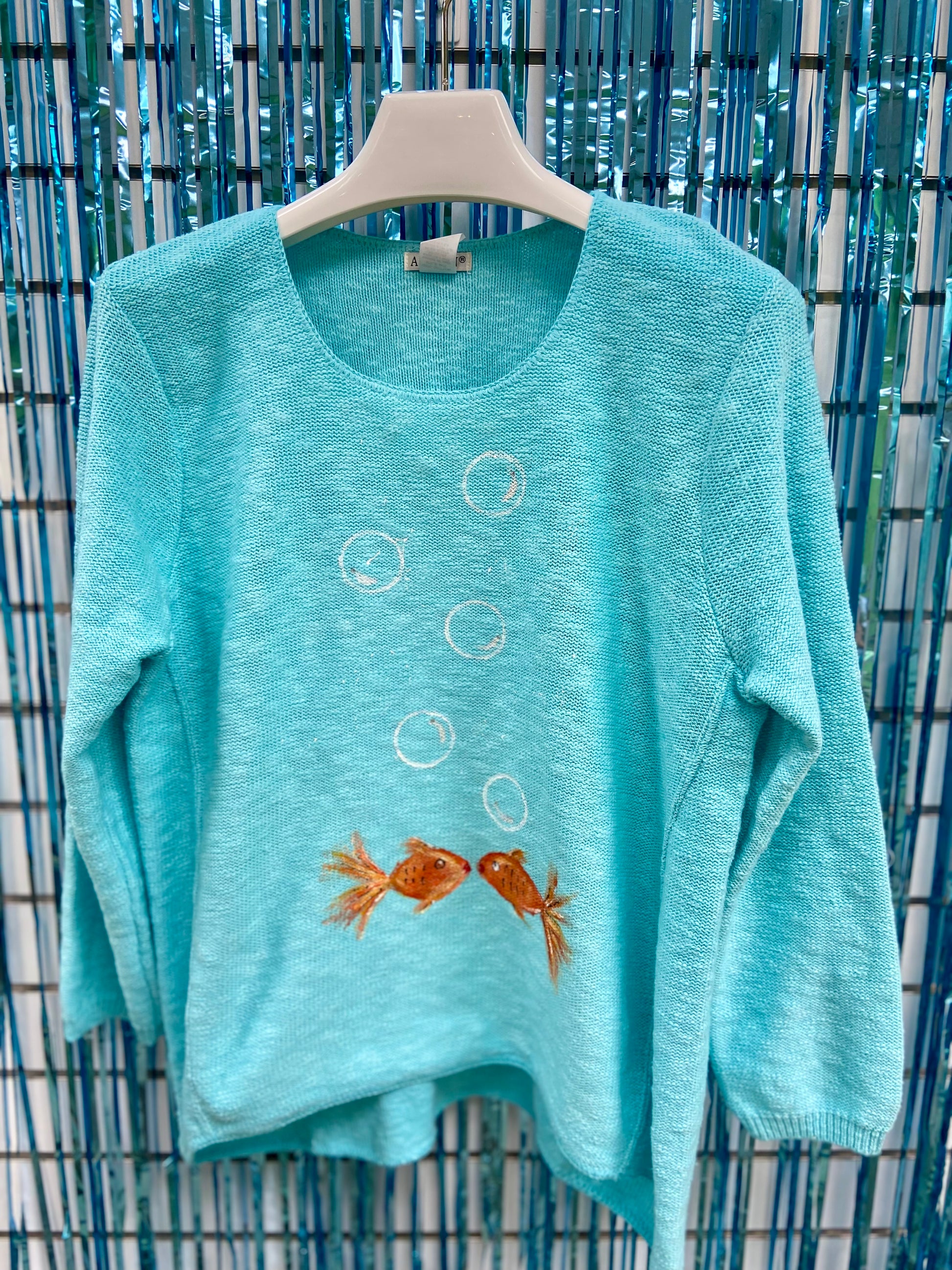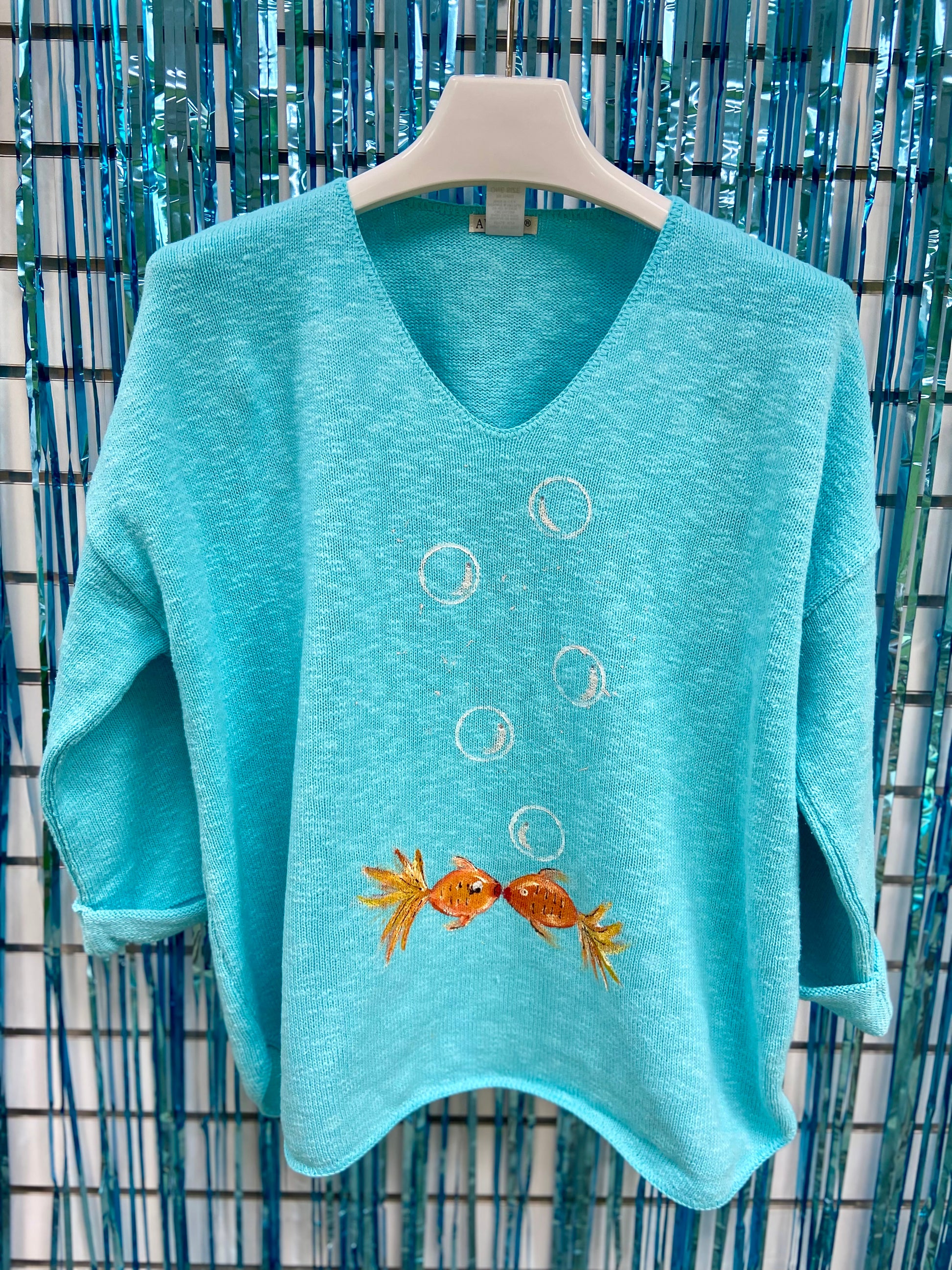 Fall in love with these cute kissing fish hand-painted by a Venice, FL artist! There are even matching bubbles on the back too!