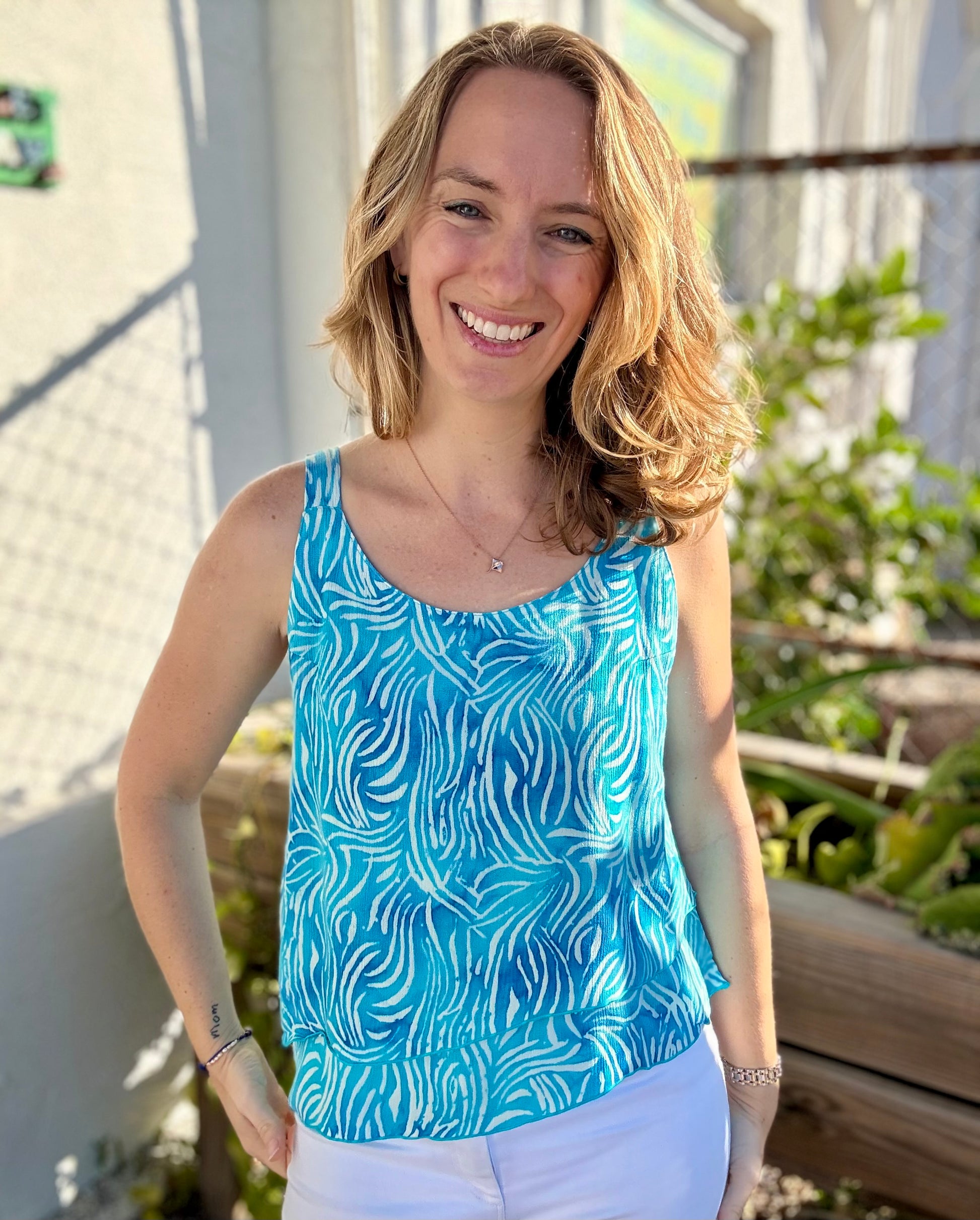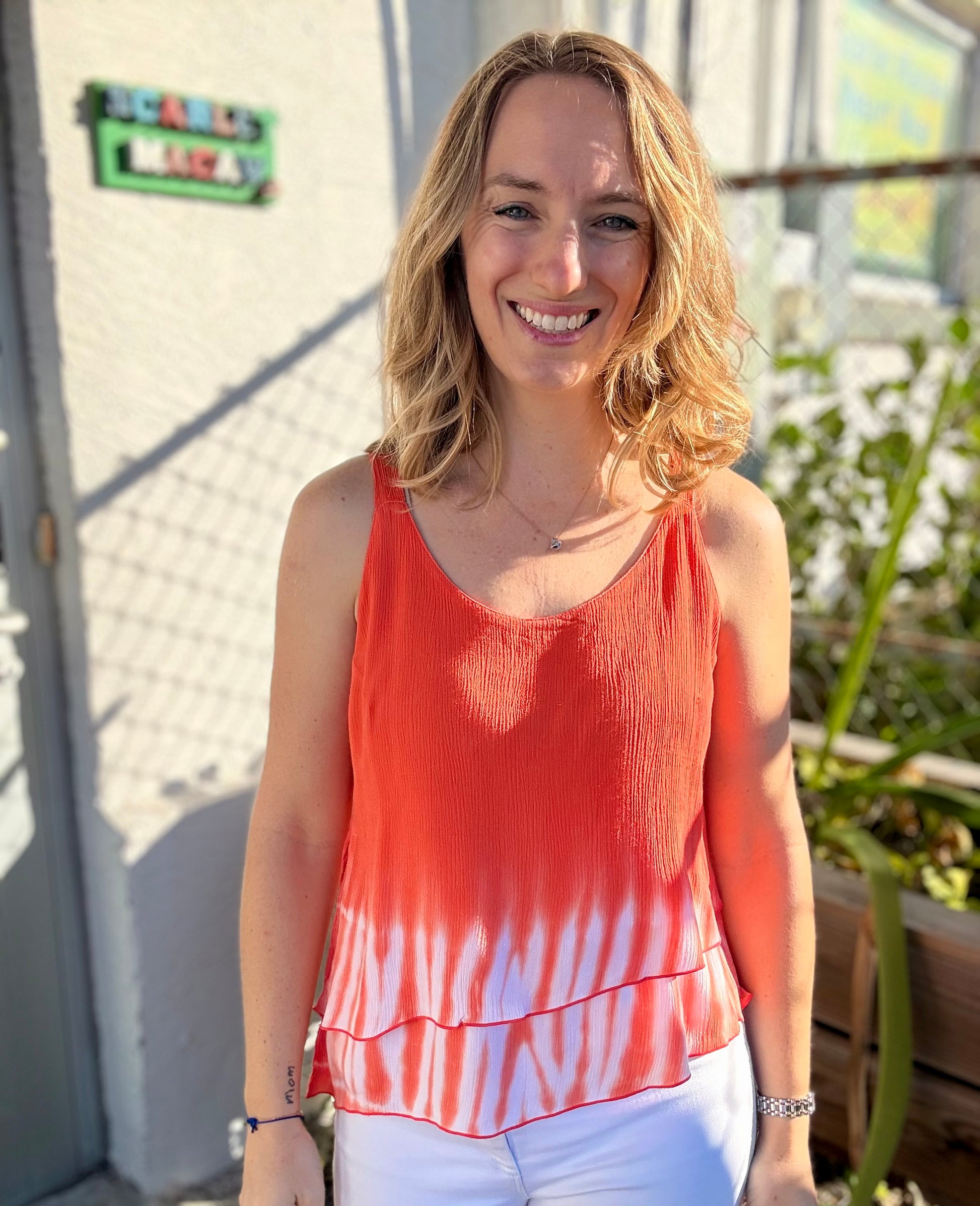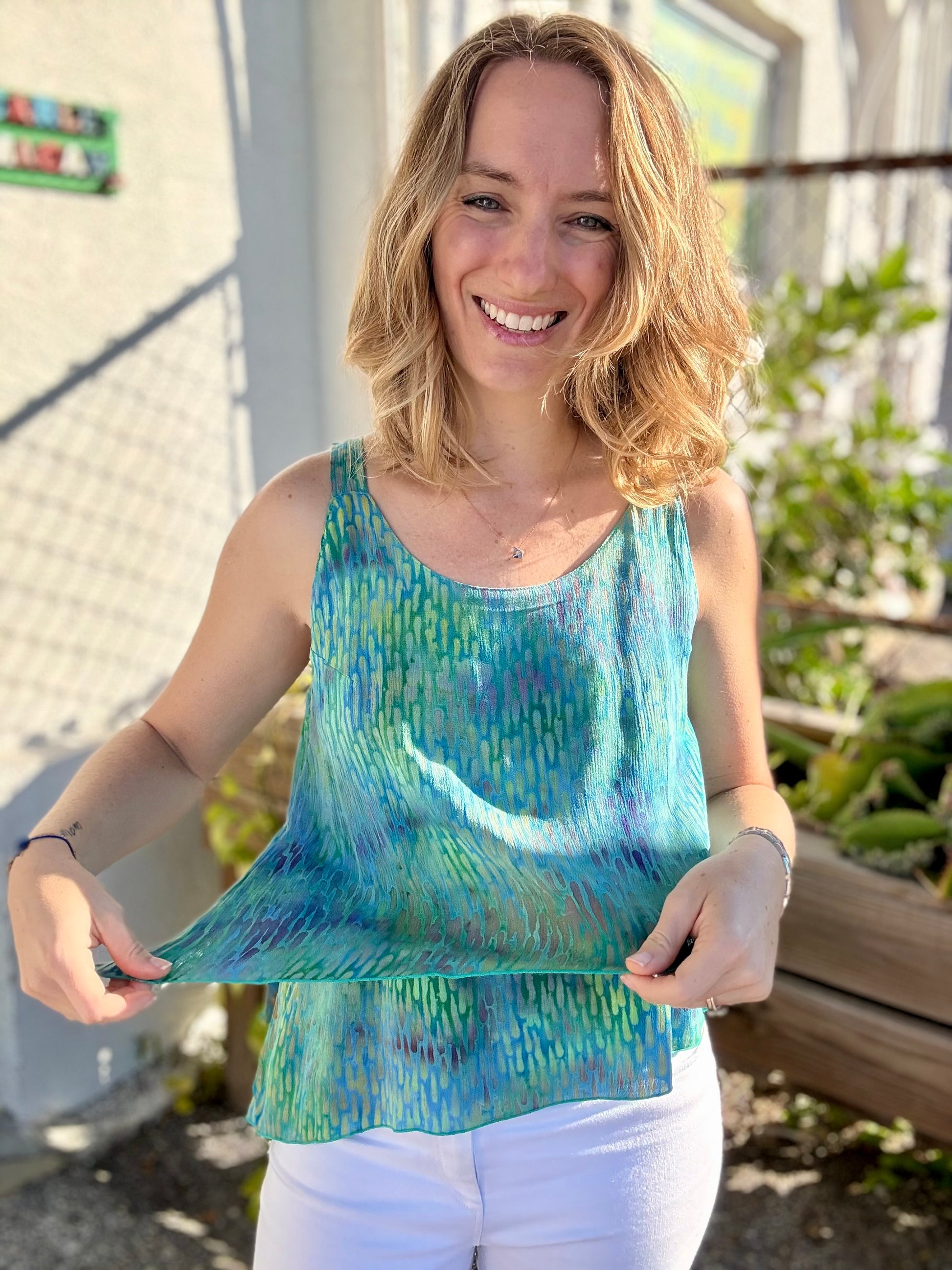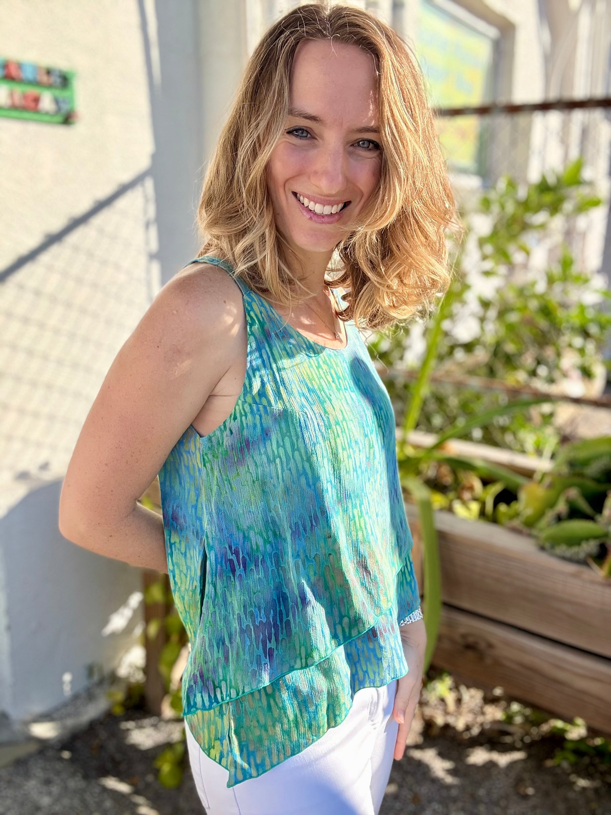 Double the fun this season in this double layer tank featuring an asymmetrical hemline.