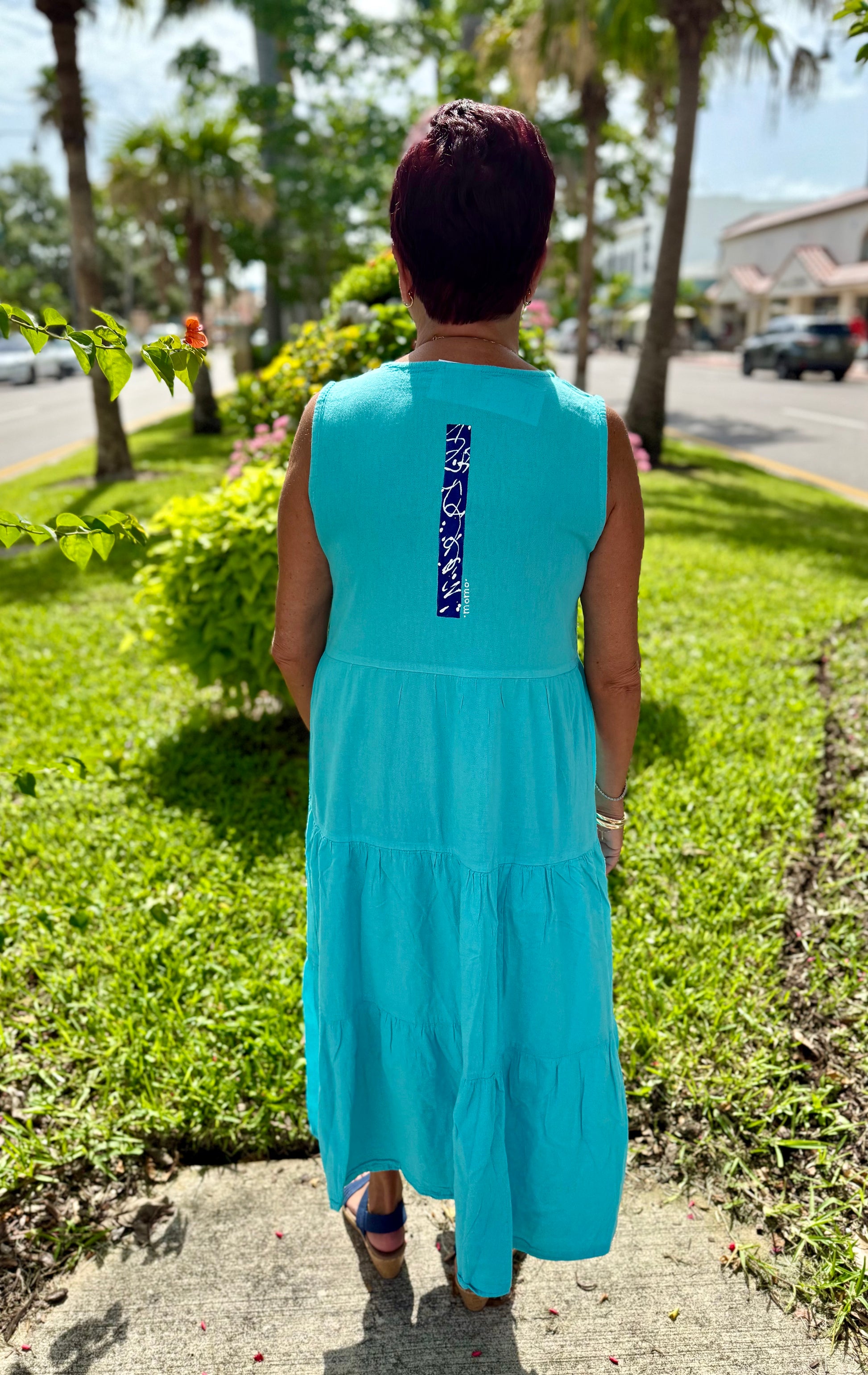 MoMo 1681 Blue Bars Painted Maxi Dress