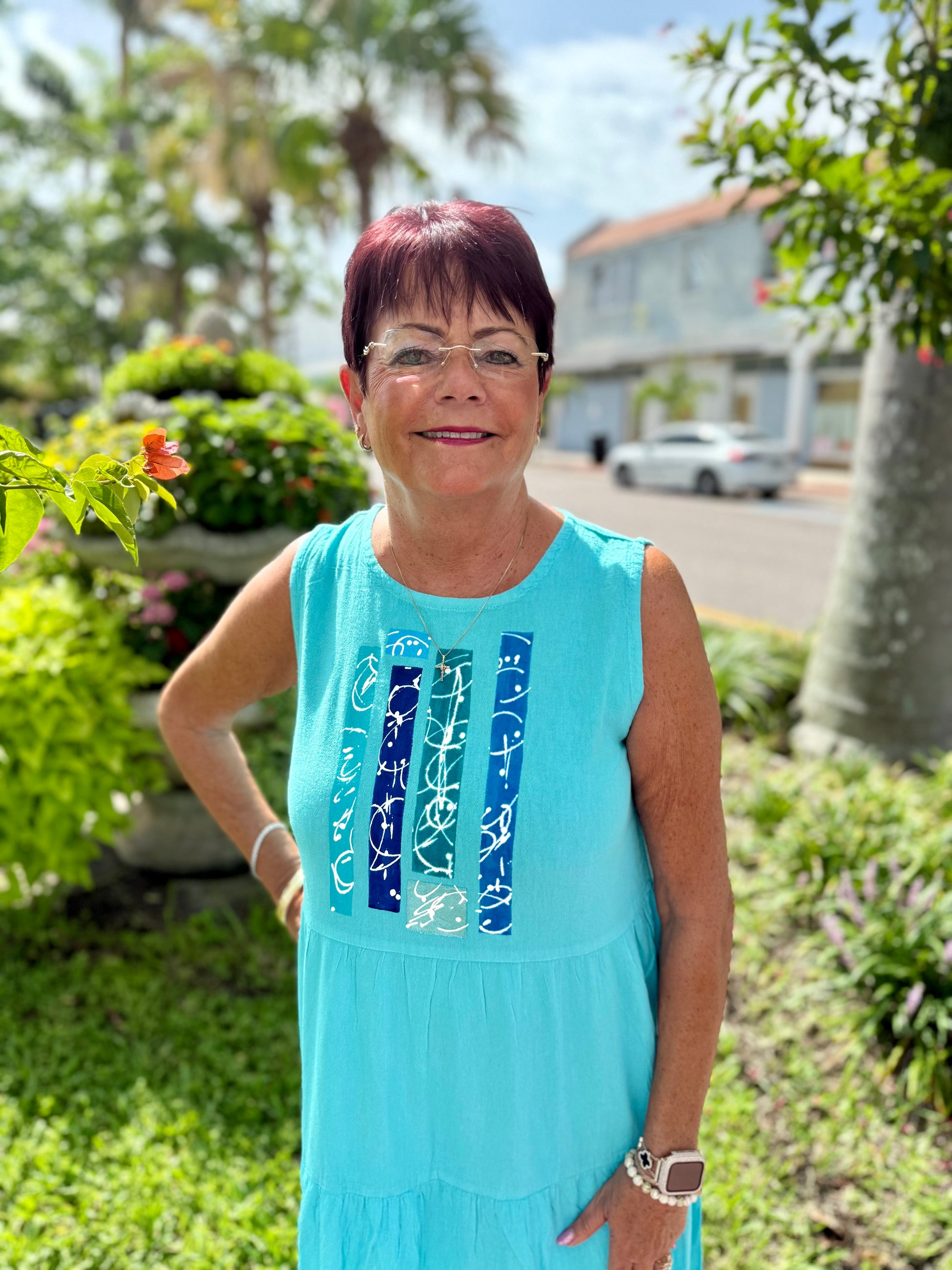 A great painted maxi dress is yours for the taking! The back even has matching artwork too!