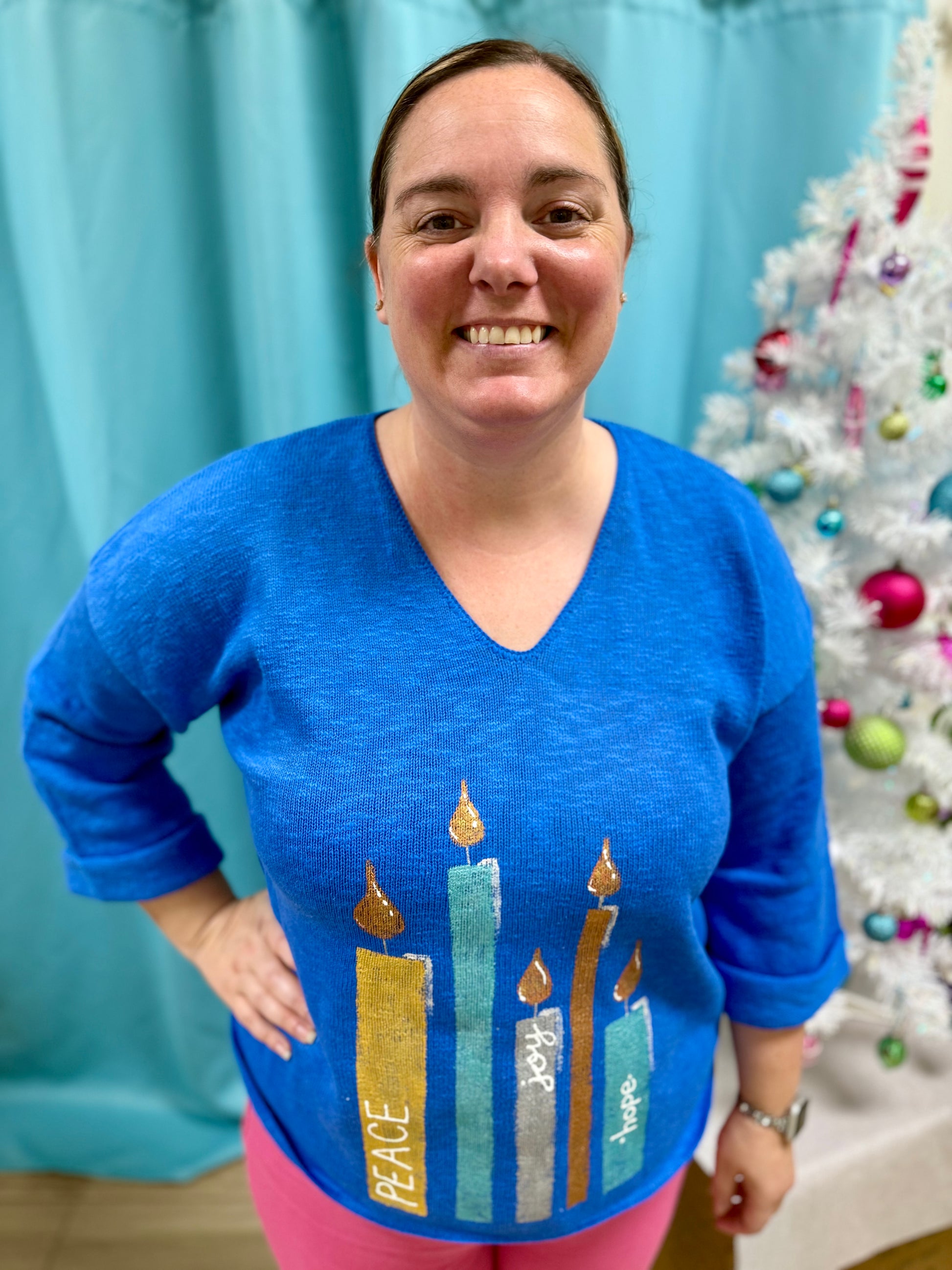 Sweaters are all one size but come in different body styles. Please review the size chart image to find your best fit! Unsure? Give us a call at 941-483-3500 for help!