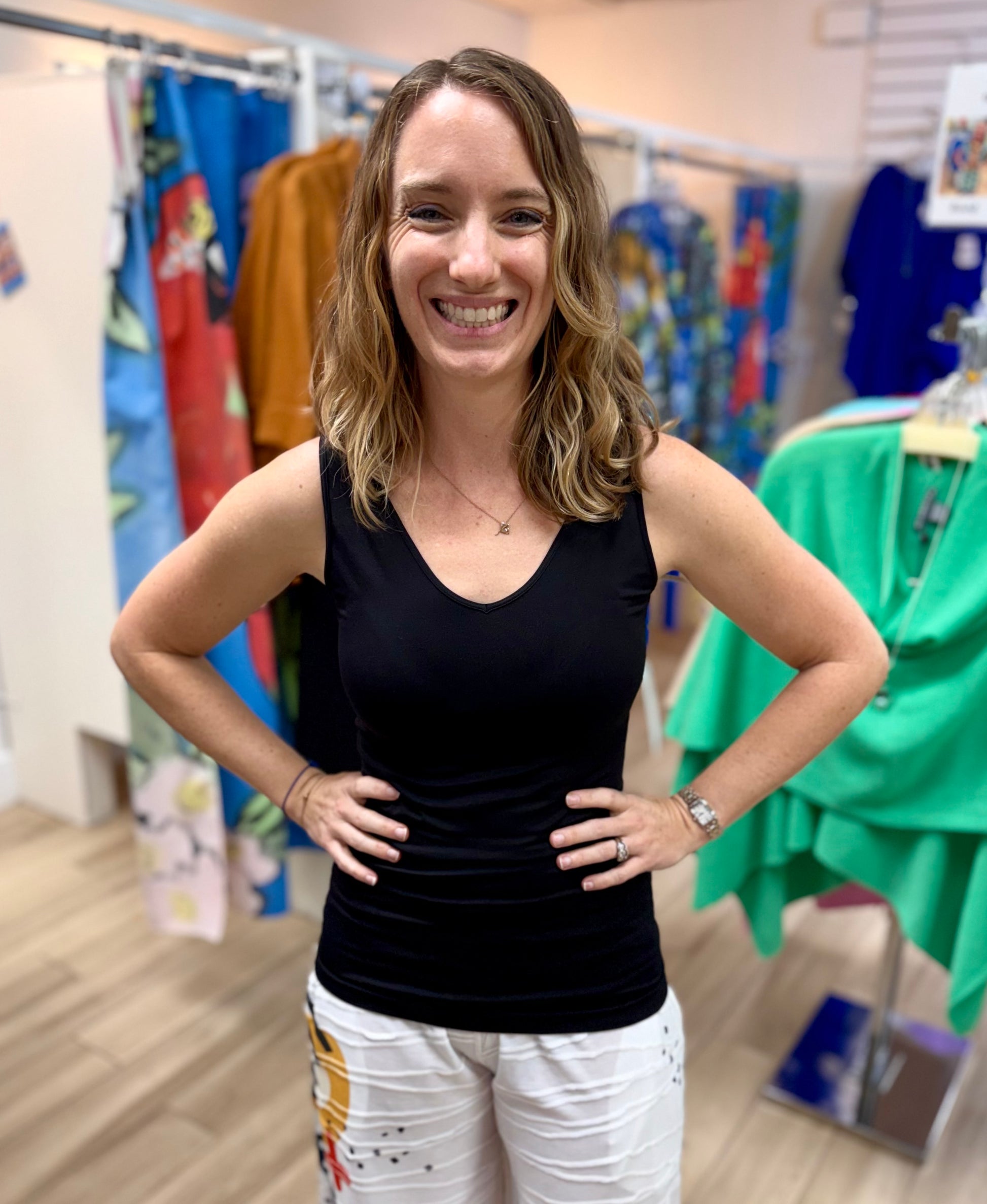 A great one size plain jersey bralette top with either a V or scoop neck depending on how you wear it!