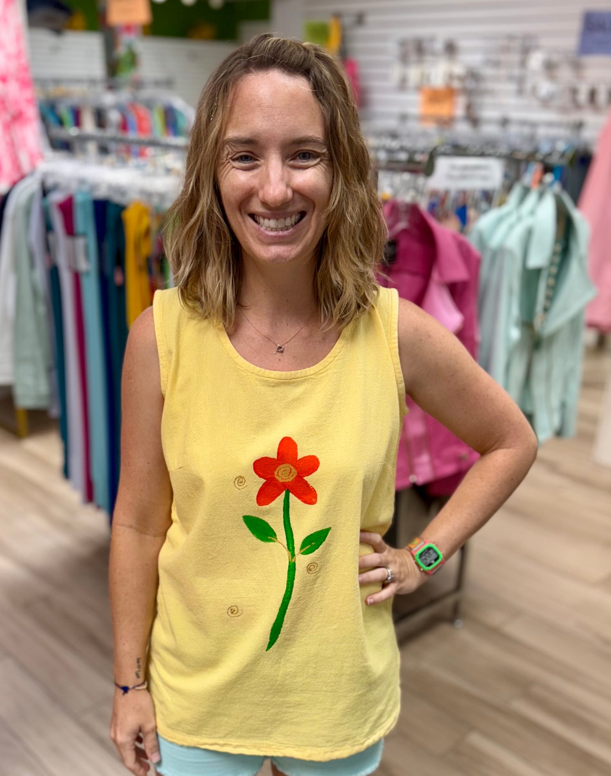 Kick back and relax in this Cottonseed tank. There is even matching art painted on the back!