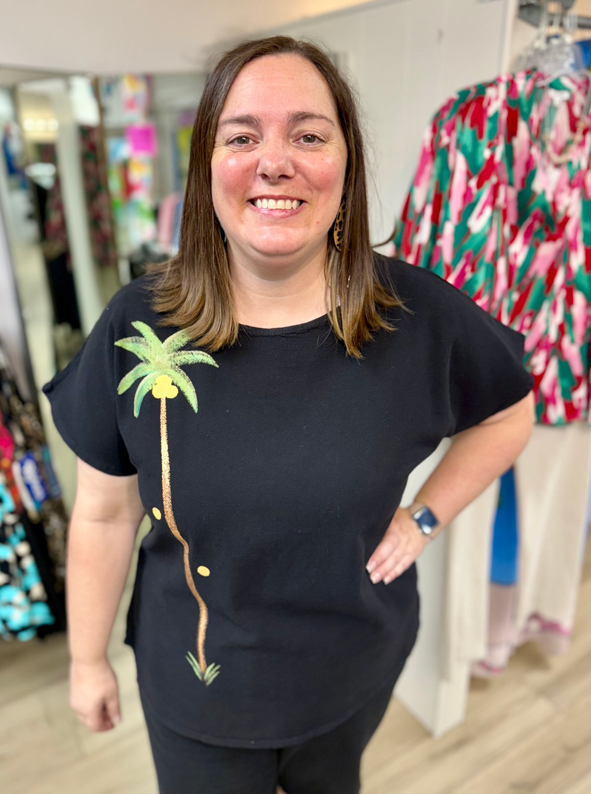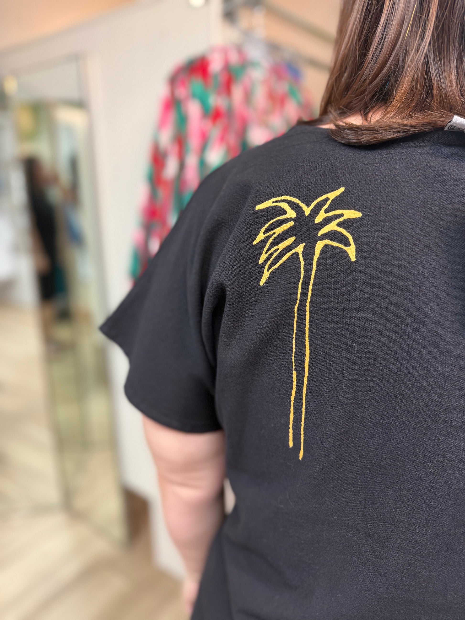 Kick back and relax in this Cottonseed tee featuring a dolman sleeve. There is even matching art painted on the back!