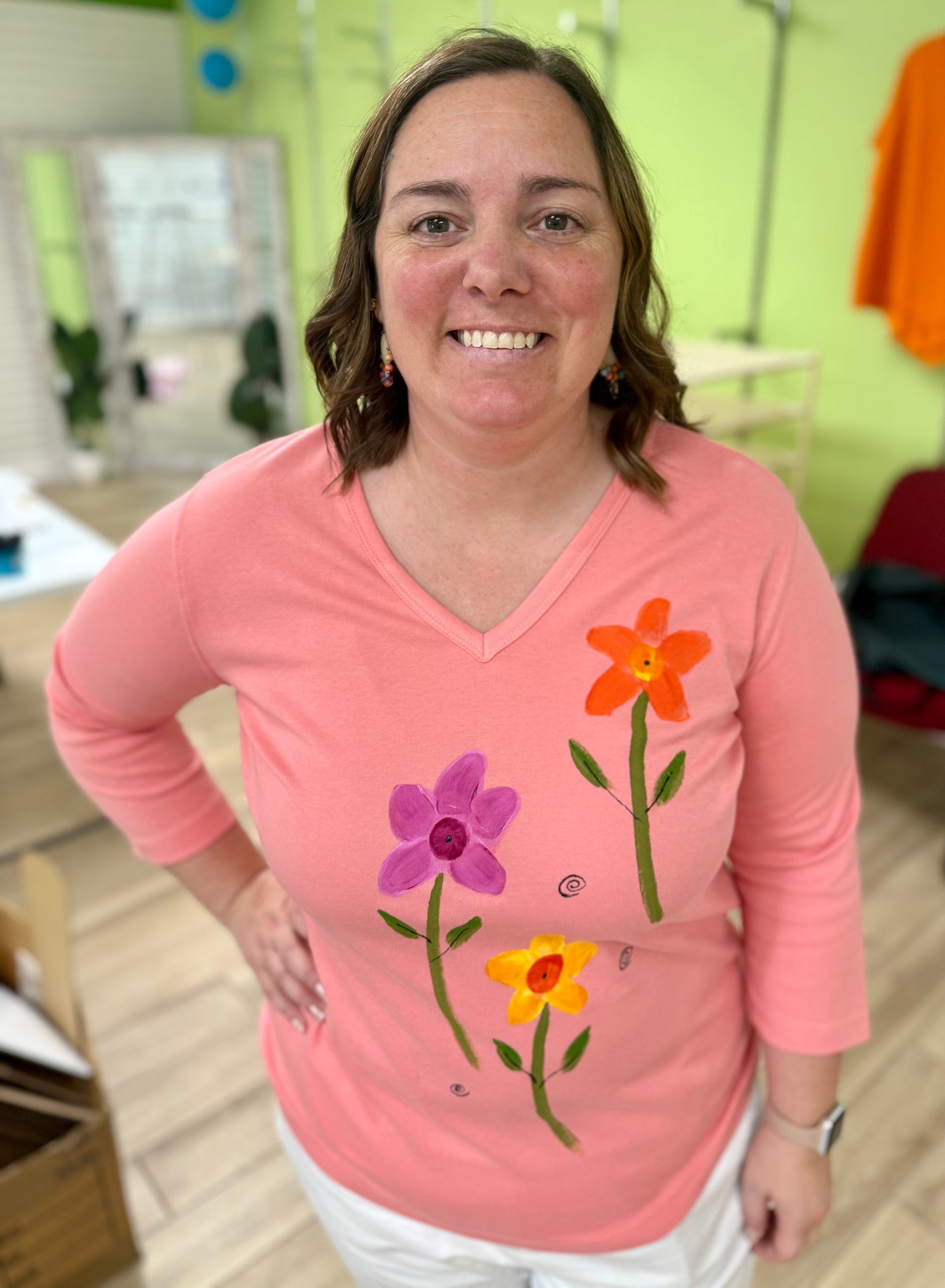 A stunning hand-painted top featuring matching artwork painted on the back!