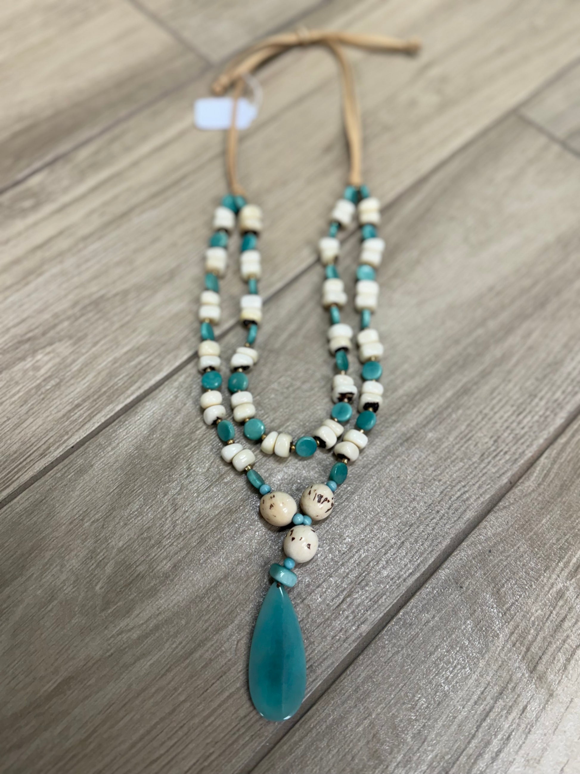 Make a statement in this long Tagua featuring a stylish charm hanging at the center.
