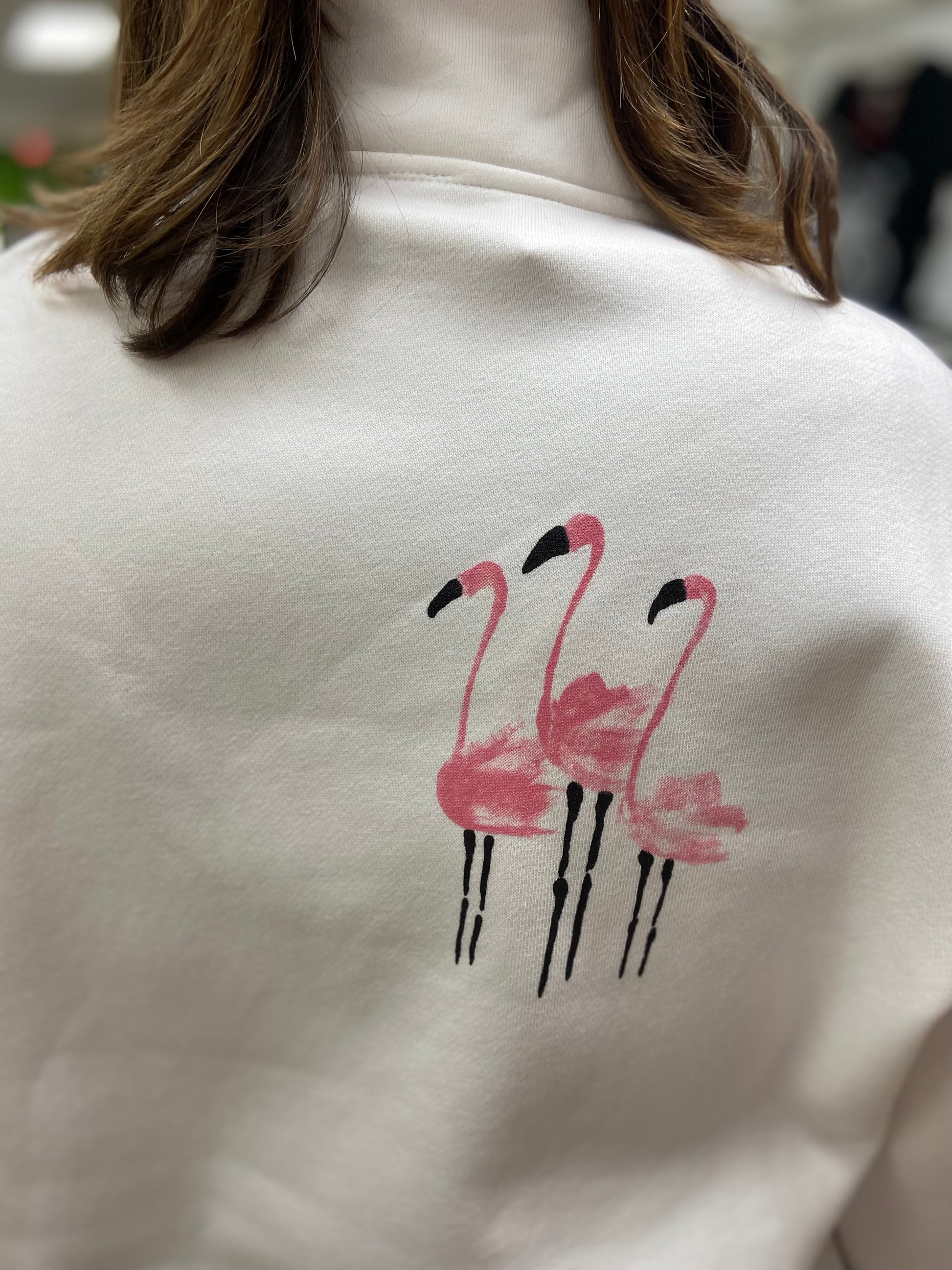 Zip up in style with this gorgeous flamingo fleece by Victoria! There is even a matching design on the back too!