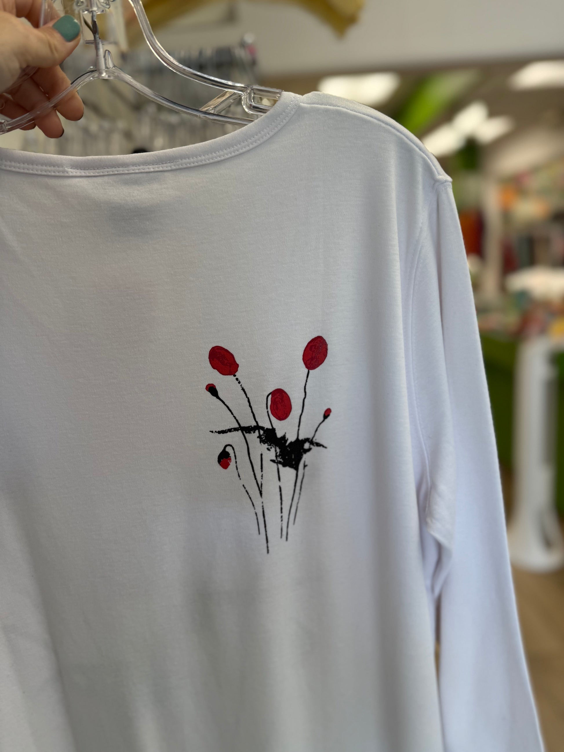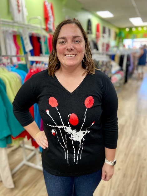 Fun florals on the front and back make this top one to stand out in the crowd!