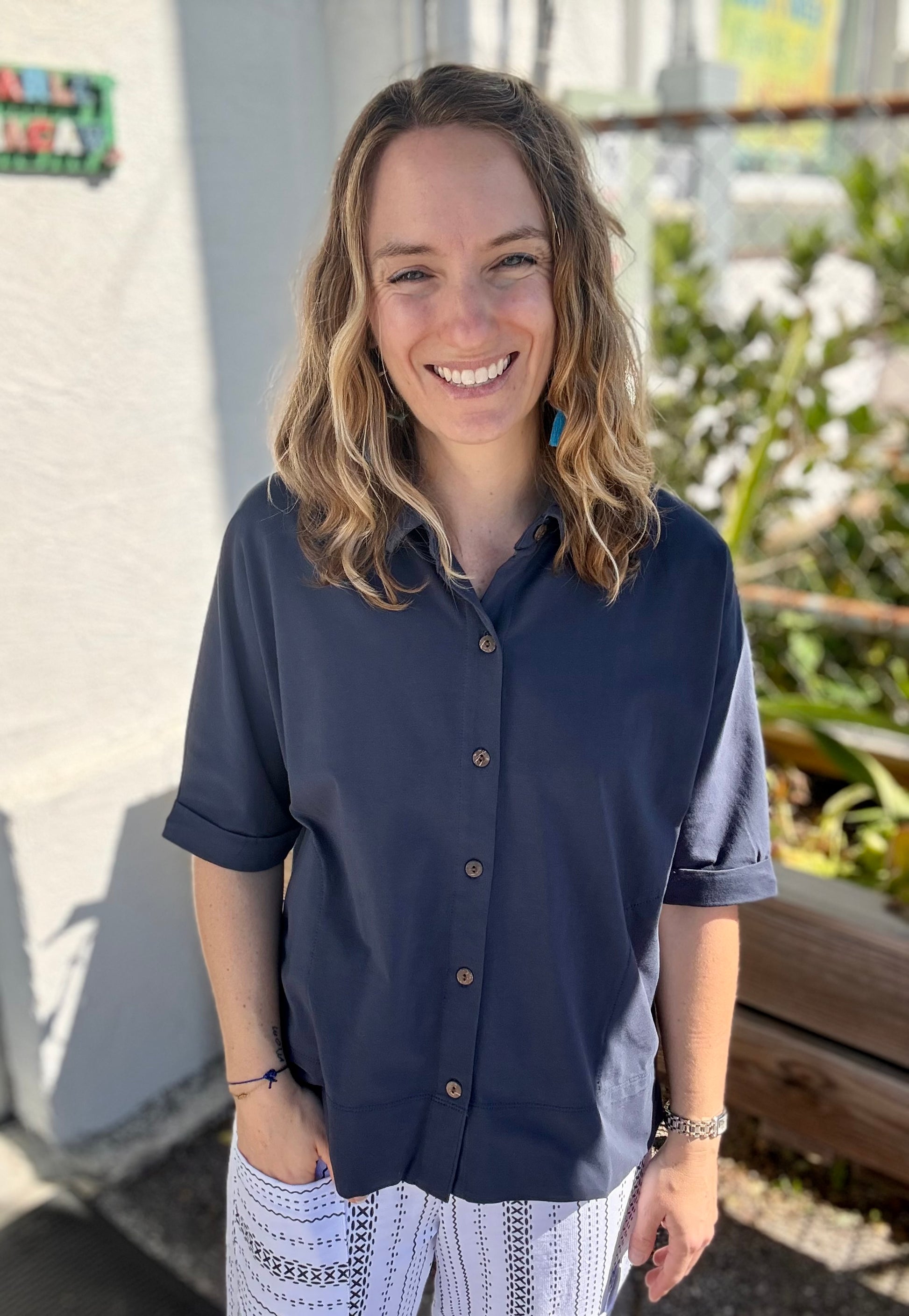 Buttons down the front - buttons down the back! You can't go wrong no matter what way you look at this cute button down!