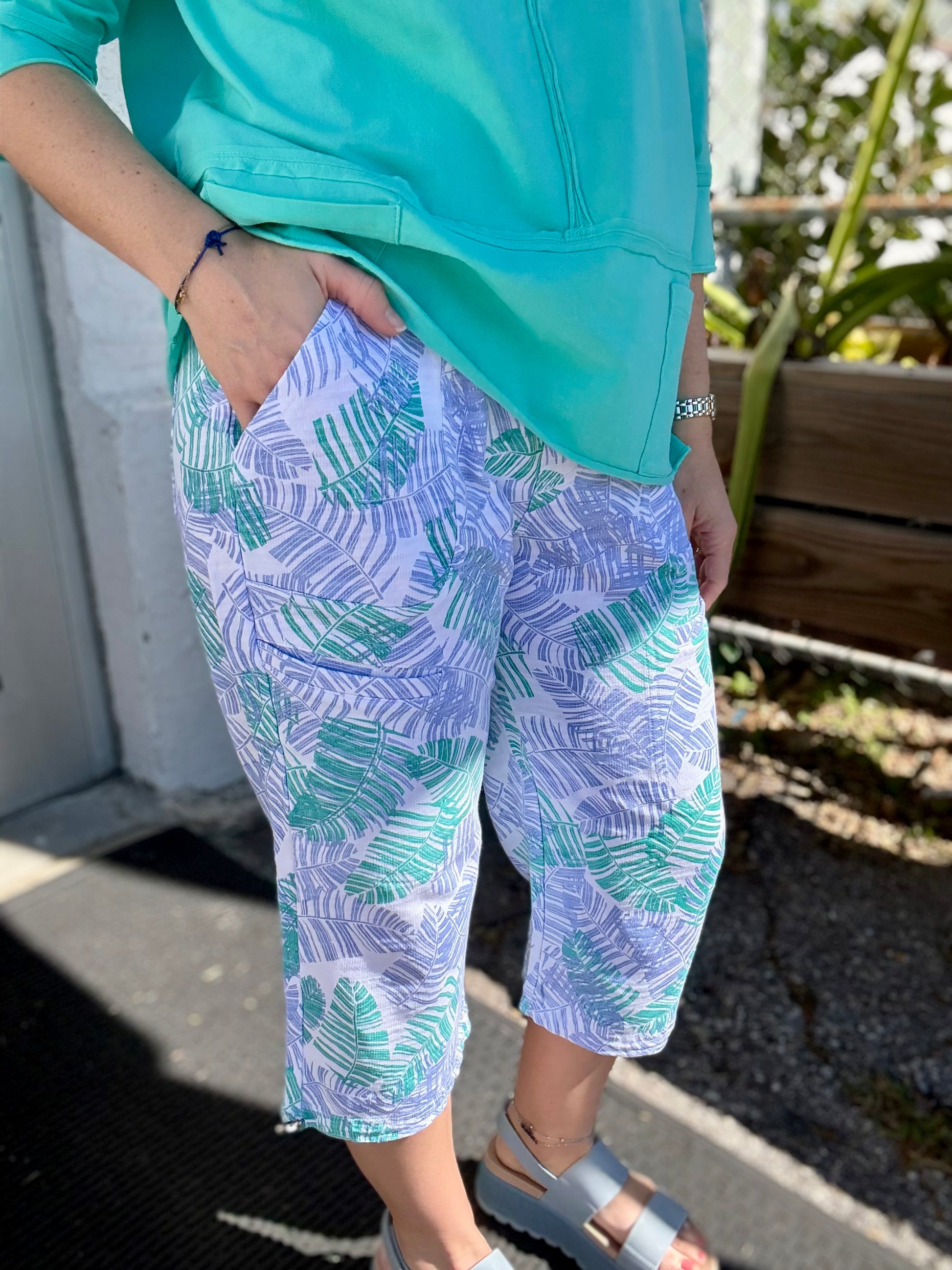 Print and pockets - you can't go wrong! These crops bottoms are so much fun and super comfy!
