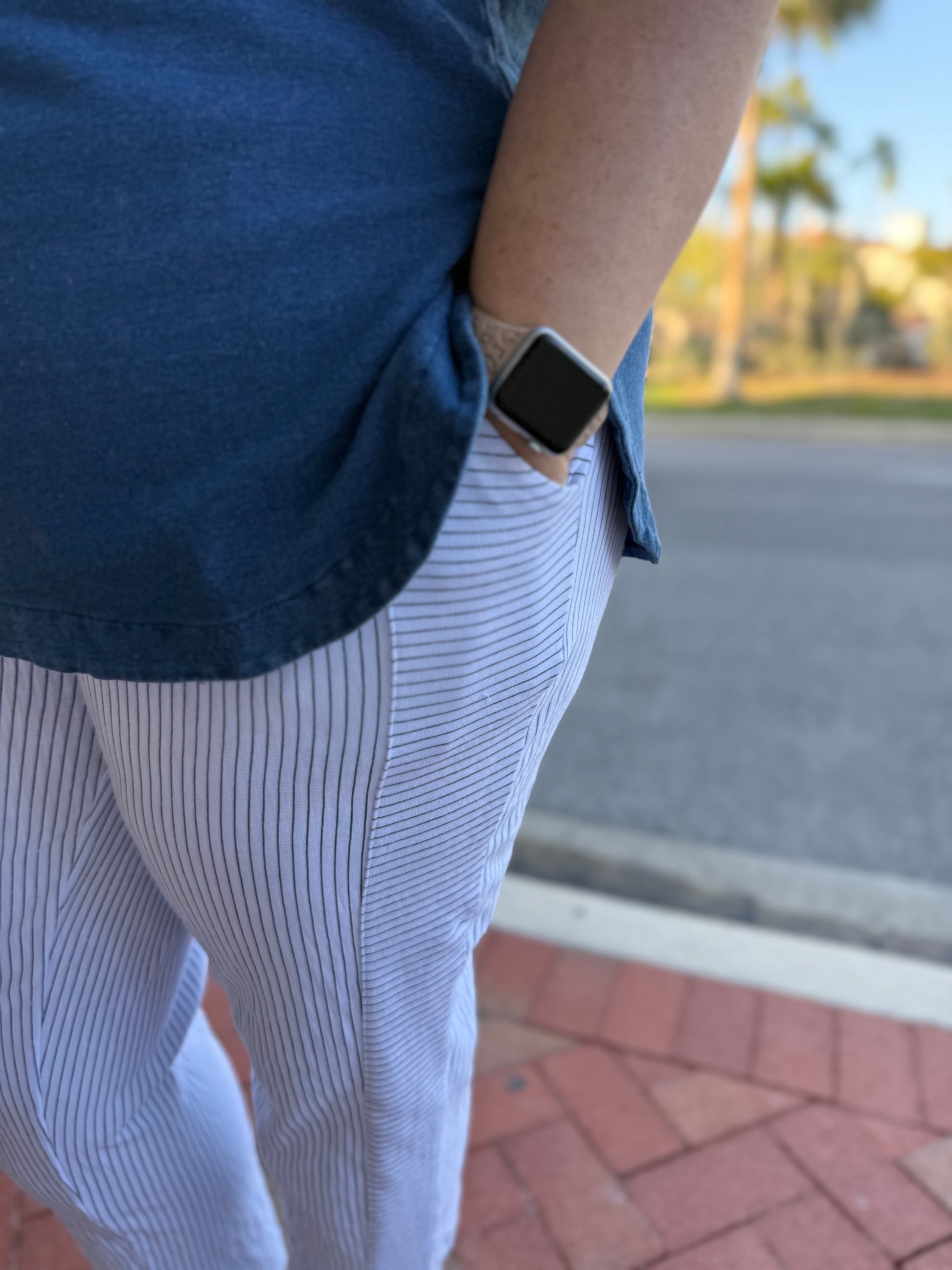 Stripes going this way and that make for a fun pair of very comfy pants!